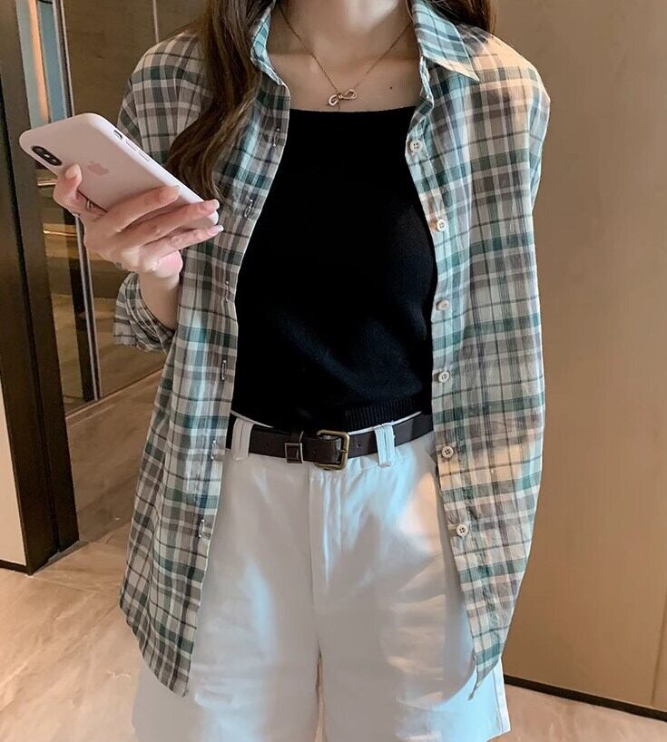 レディース シャツ 長袖 襟付き レトロ メンズライク マニッシュ ボーイッシュ スポーティー チェック 春 夏 秋 20代 30代 お出かけ アウトドア キャンプ 旅行 海 プール 体型カバー 普段使い 着回し M L XL 2XL 3XL 4XL ゆったり イエロー グリーン | Bonny Me