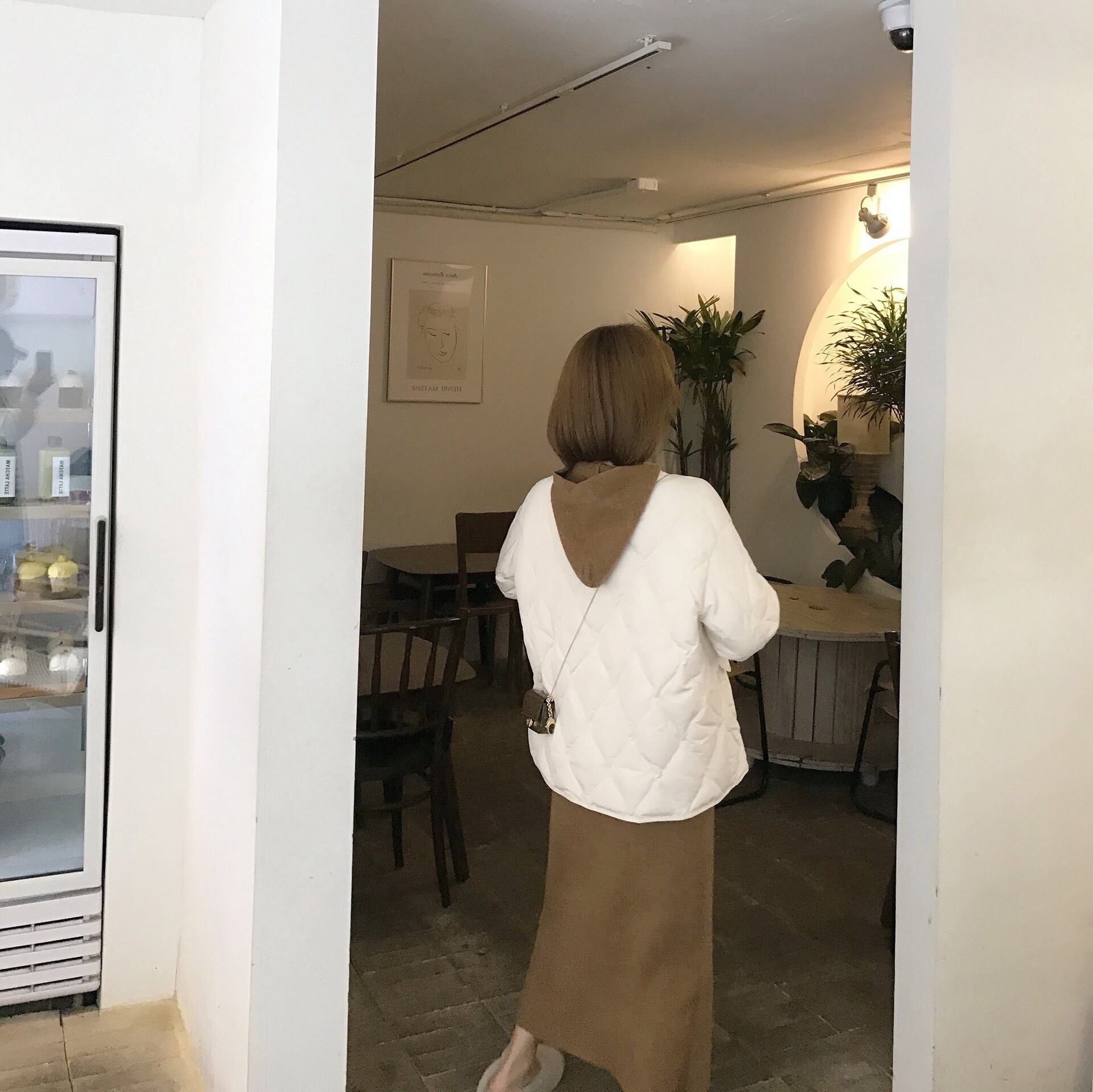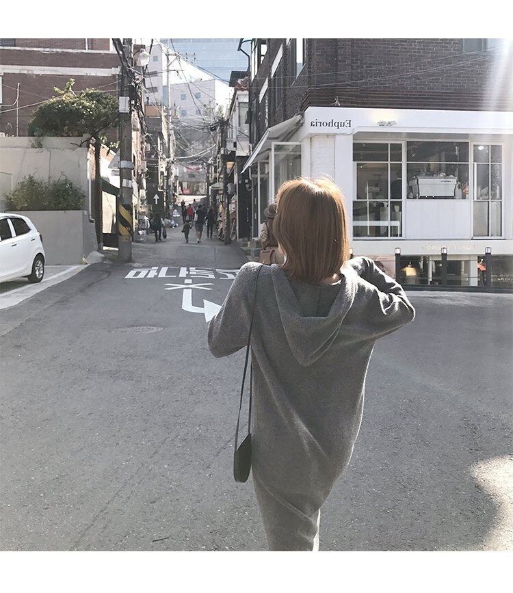 フード付きニットワンピースでこなれ感のある大人スタイルに