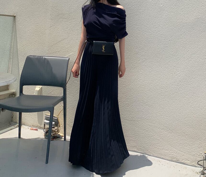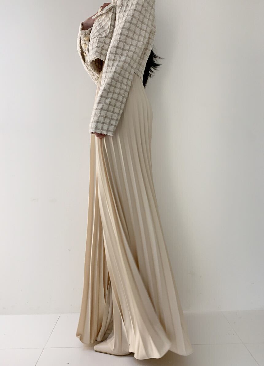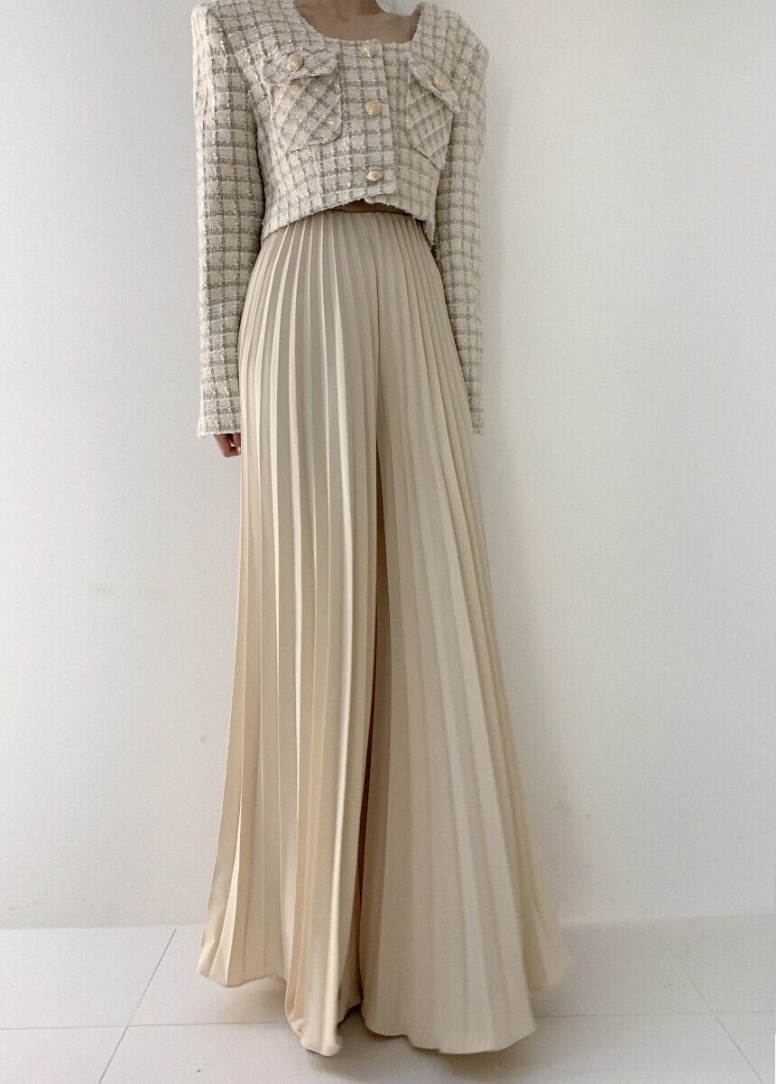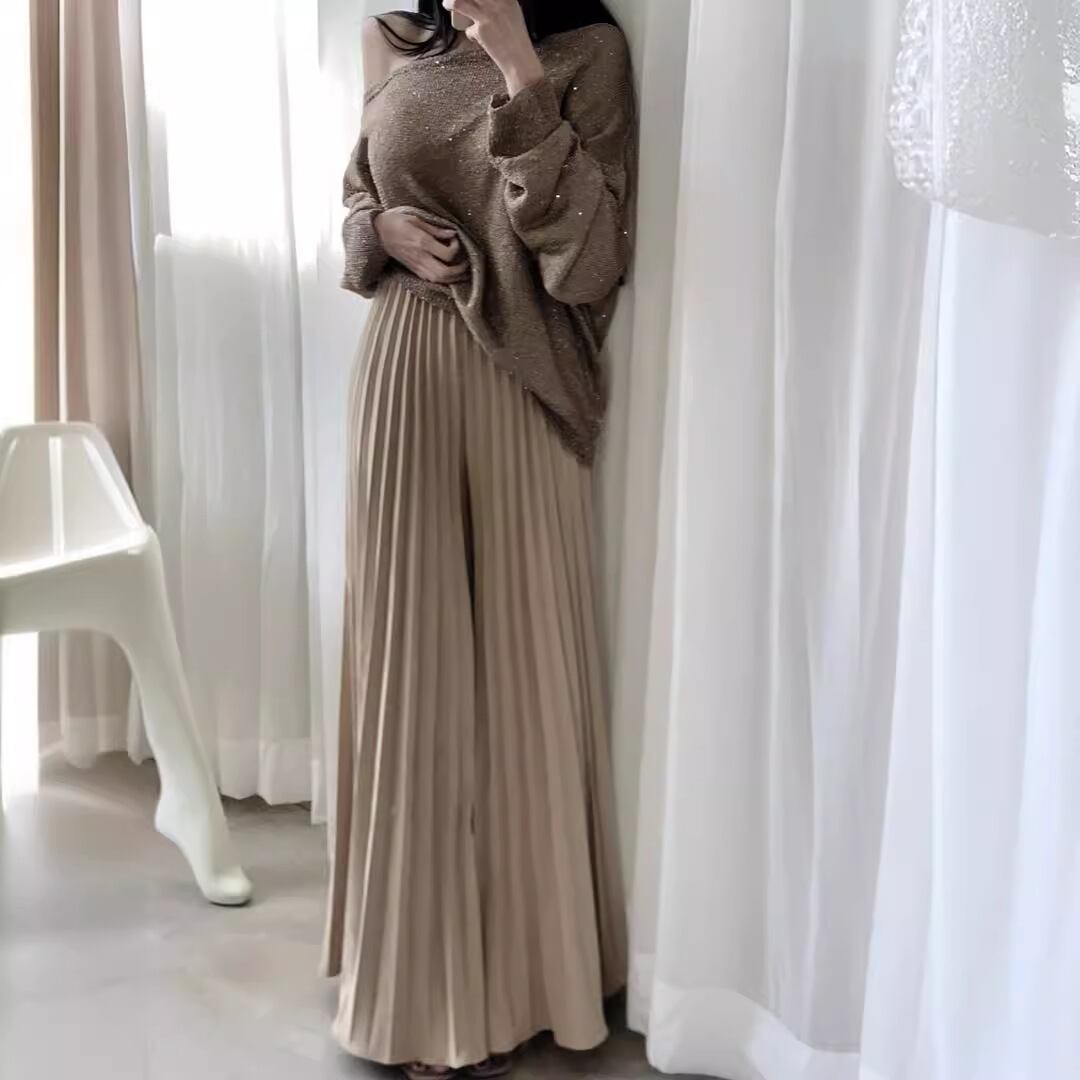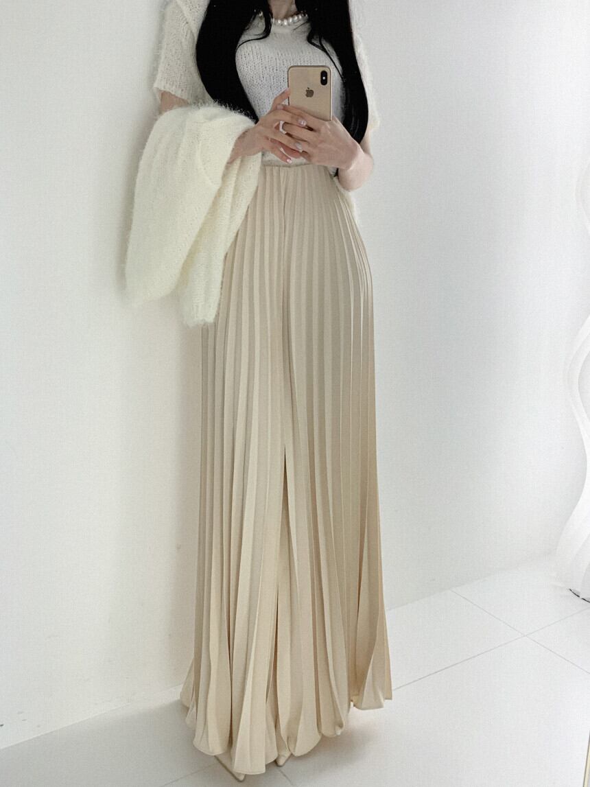 ハイウエストデザインで脚長効果抜群のワイドプリーツパンツ