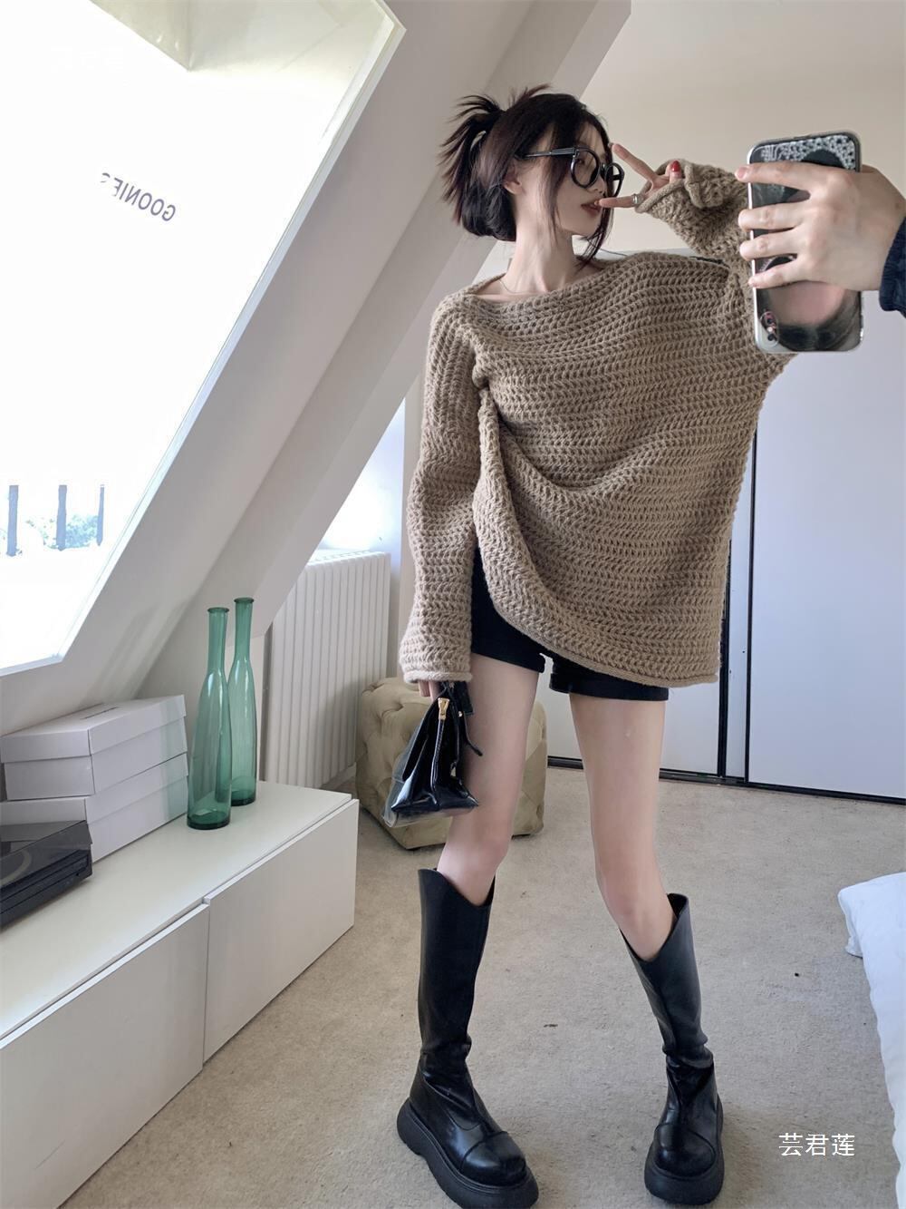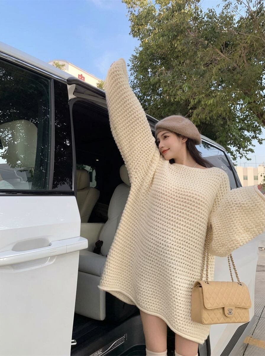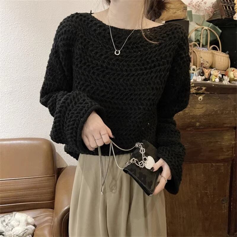 ざっくりニットのワンショルダーセーター