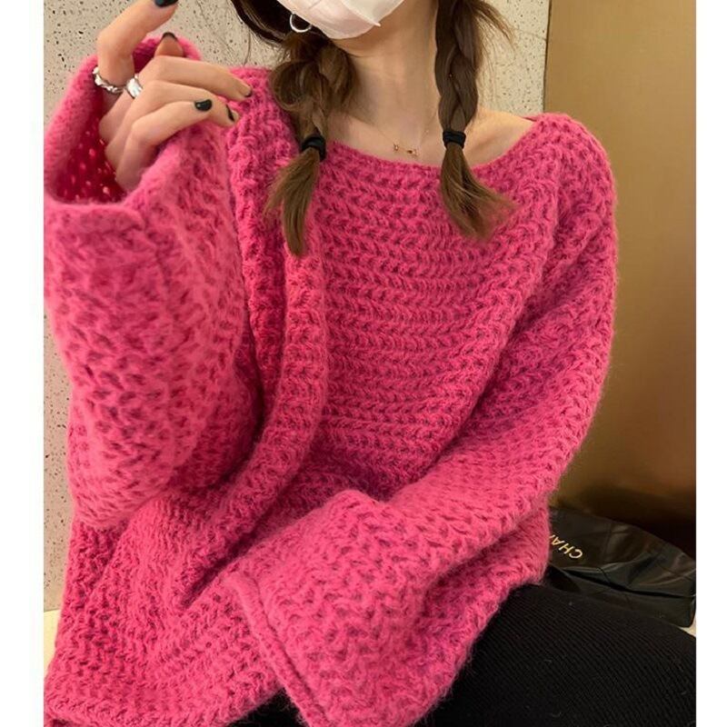 レディース トップス ニットセーター ワンショルダー ミドル丈 長袖 オフショルダー ルーズ ざっくり ドロップショルダー かわいい おしゃれ こなれ感 大人可愛い 無地 秋 冬 20代 30代 40代 デート お出かけ 女子会 体型カバー 韓国 S M L XL 2XL 3XL ローズレッド ホワイト カーキ グリーン ダークグレー