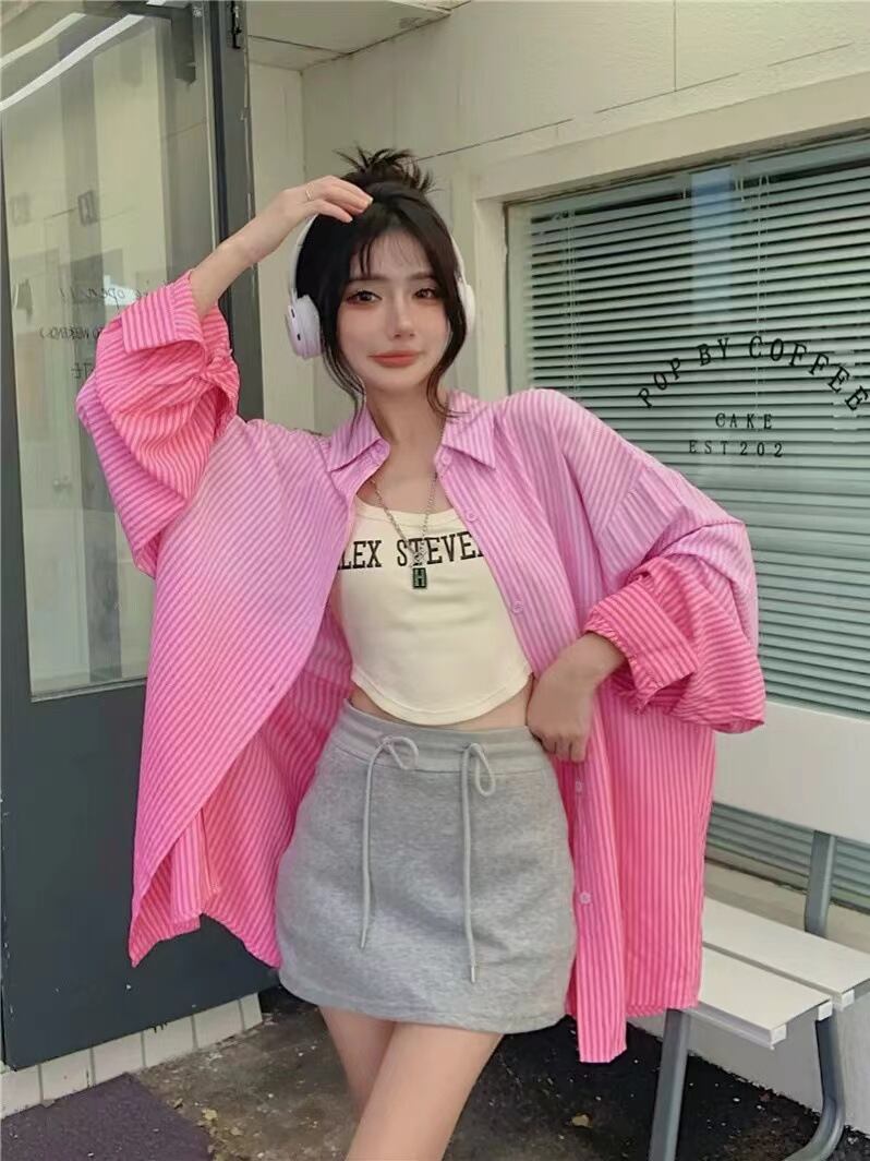 グラデーションカラーとストライプが融合したトレンドシャツワンピース オーバーサイズシルエットで体型を選ばず着こなせる 春秋のデートやお出かけにぴったりな一枚