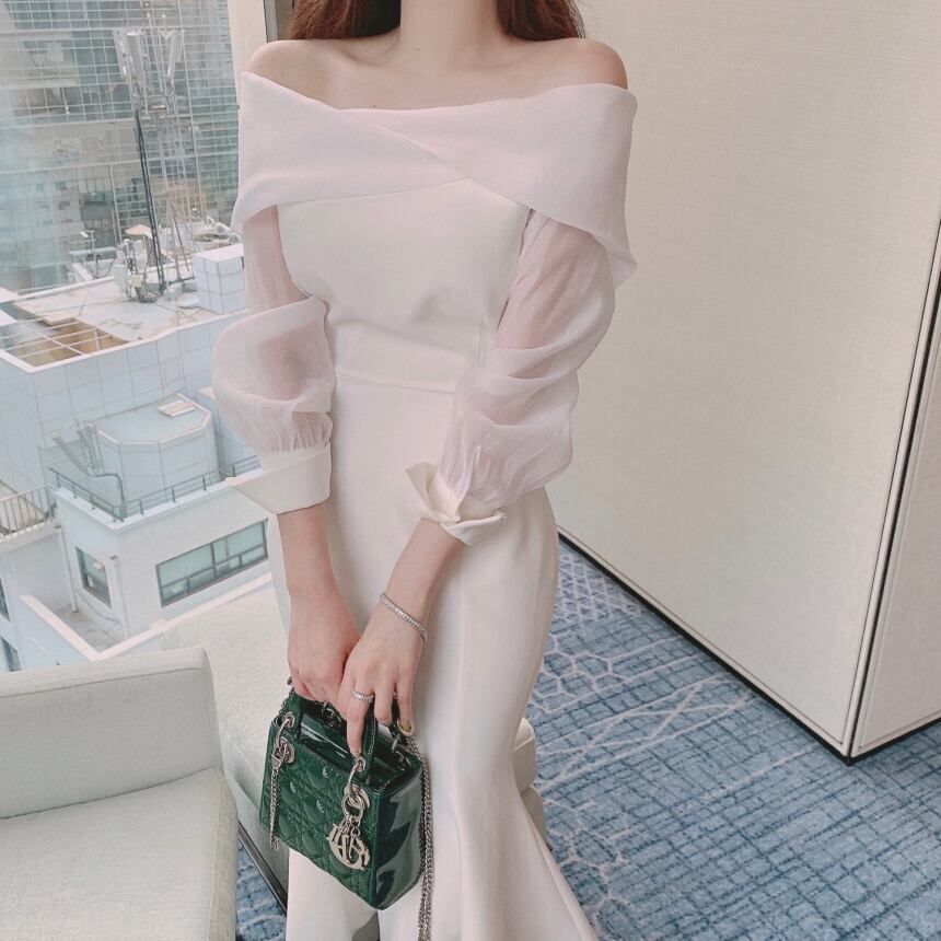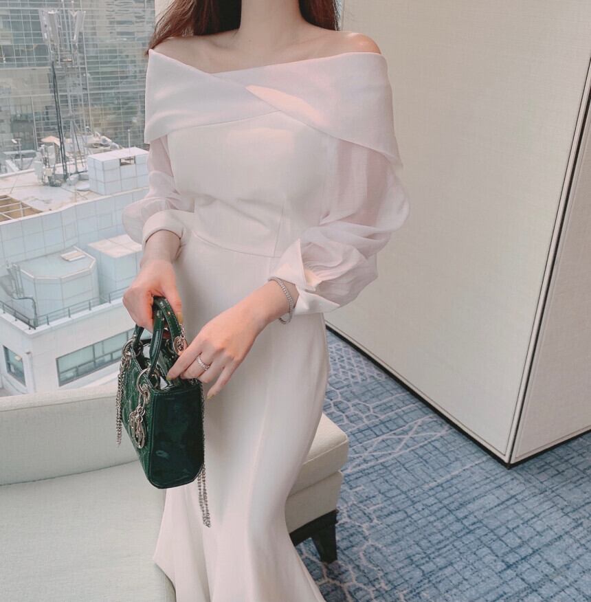 フランス風の優雅なデザインが魅力のフィッシュテールロングワンピース