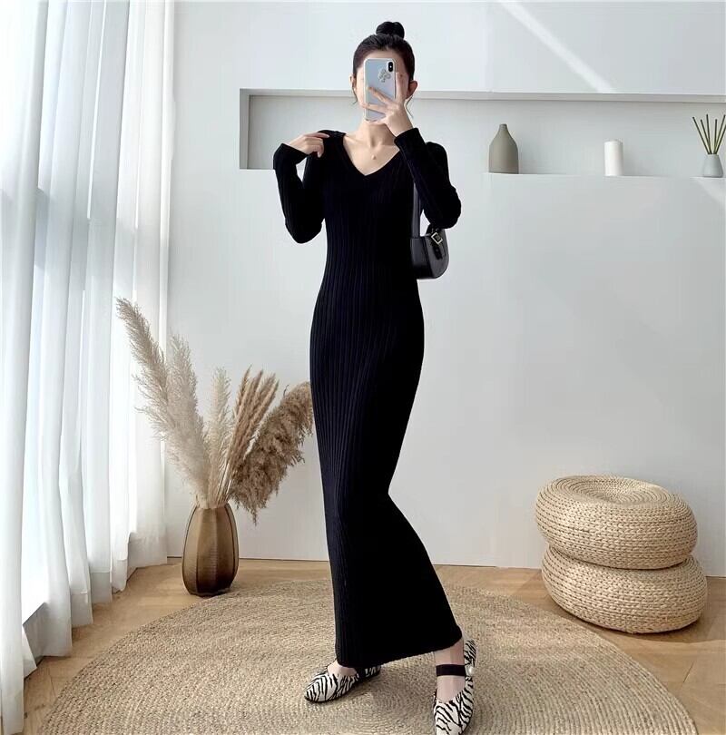 ストレッチ性があり体のラインを美しく見せるロングニットワンピース
