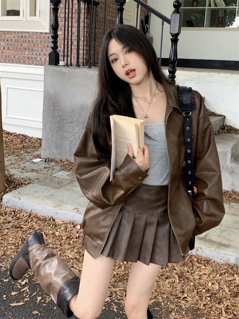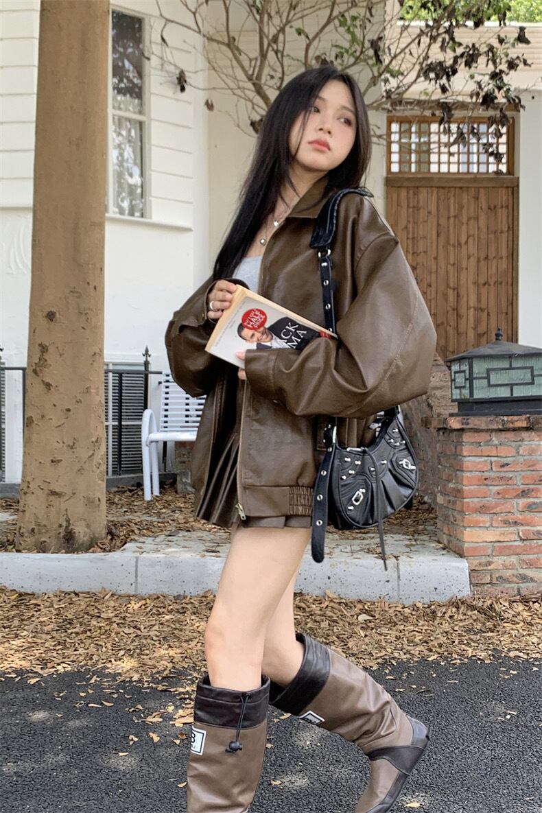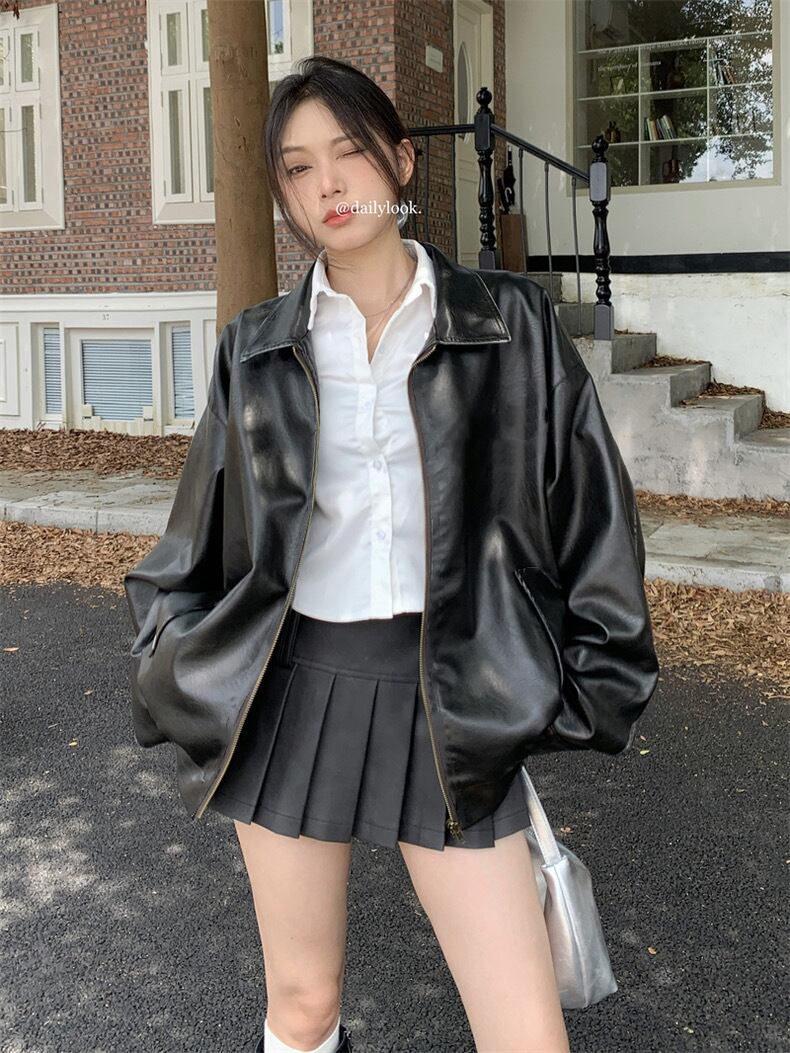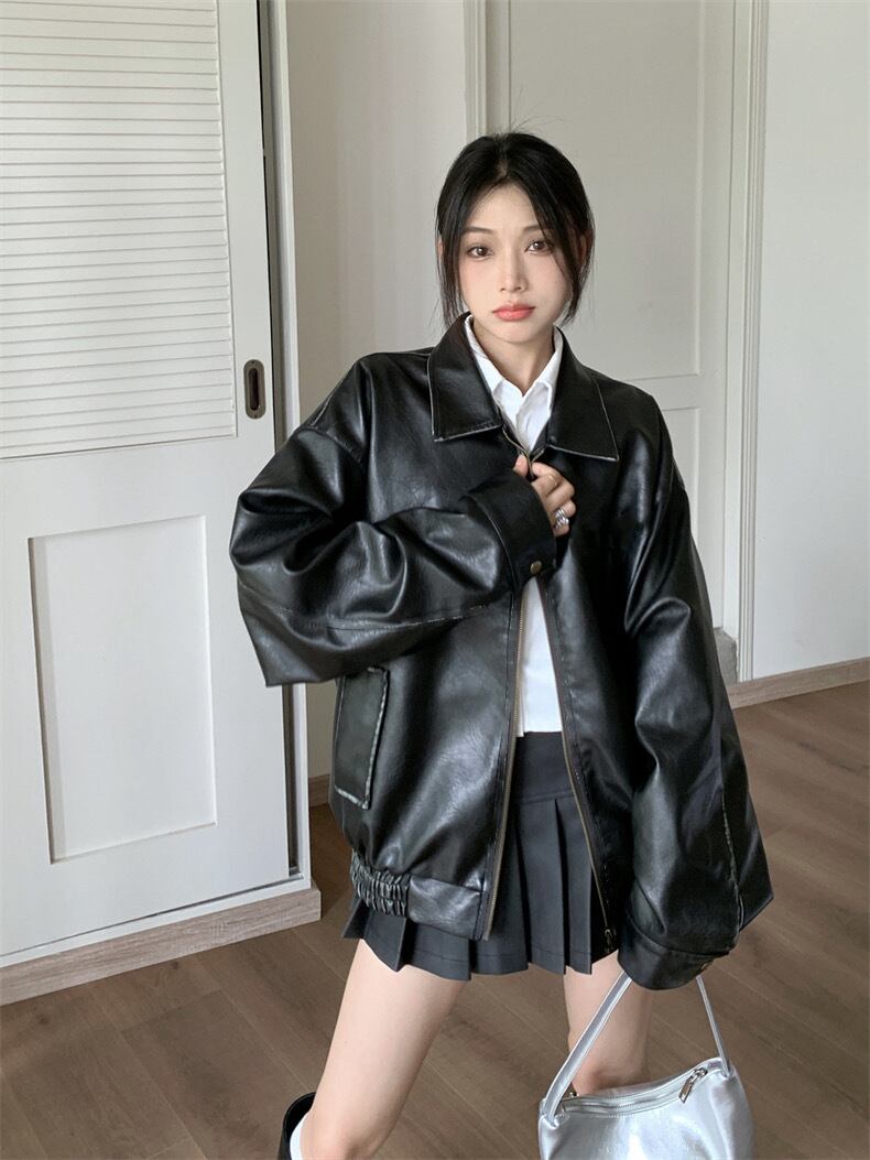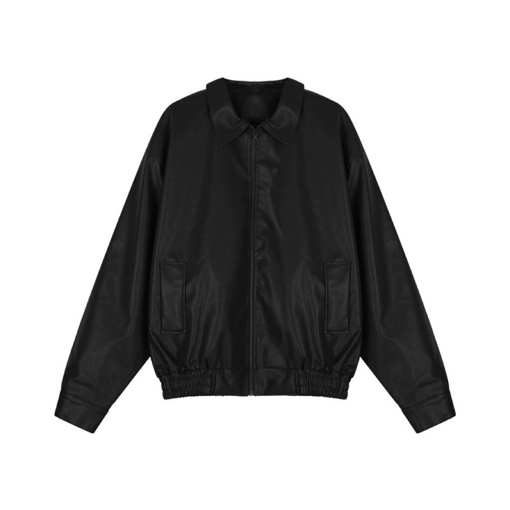 レディース アウター ジャケット レザージャケット ロング丈 長袖 襟付 オーバーサイズ ワイド レザー ボタン ゆったり おしゃれ こなれ感 大人可愛い きれいめ 無地 秋 冬 20代 30代 40代 デート お出かけ 通勤 韓国 体型カバー S M L XL 2XL ブラック 黒 ブラウン 茶色