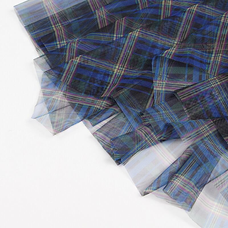 チェック柄のメッシュチュールが重なり合う上品なハイウエストフレアスカート