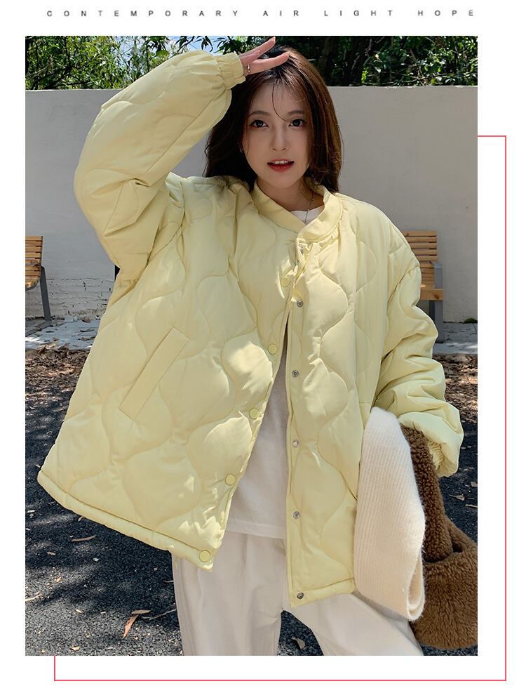 レディース アウター キルティングコート ショート丈 長袖 ラウンドネック オーバーサイズ ゆったり キルティング ボタン フロントオープン かわいい おしゃれ 大人可愛い こなれ感 無地 秋 冬 20代 30代 40代 デート お出かけ 通勤 韓国 体型カバー オーバーサイズ S M L XL 黒 ブラック オフホワイト ピンク 水色 ライトブルー 黄色 イエロー ラベンダー