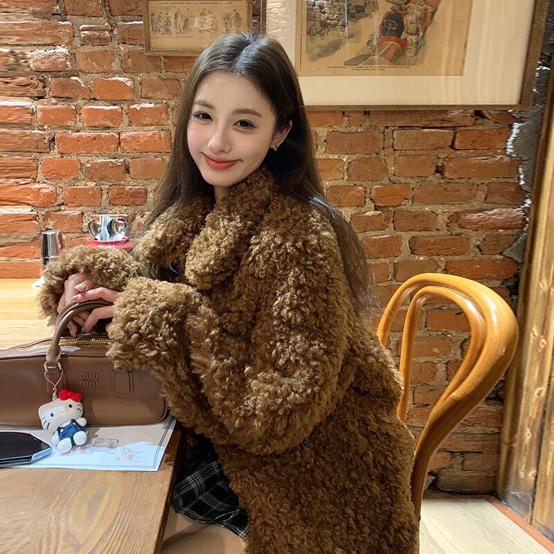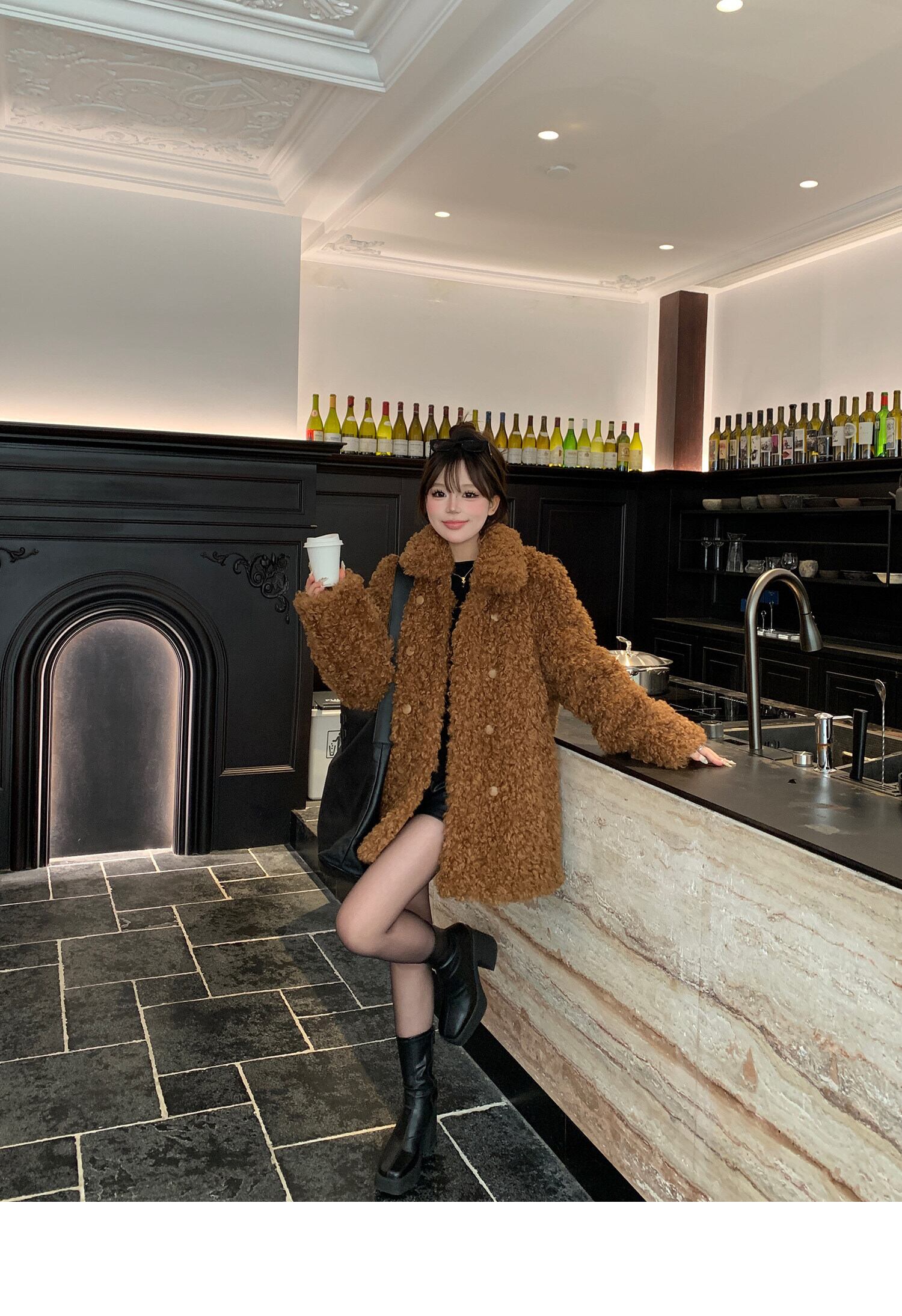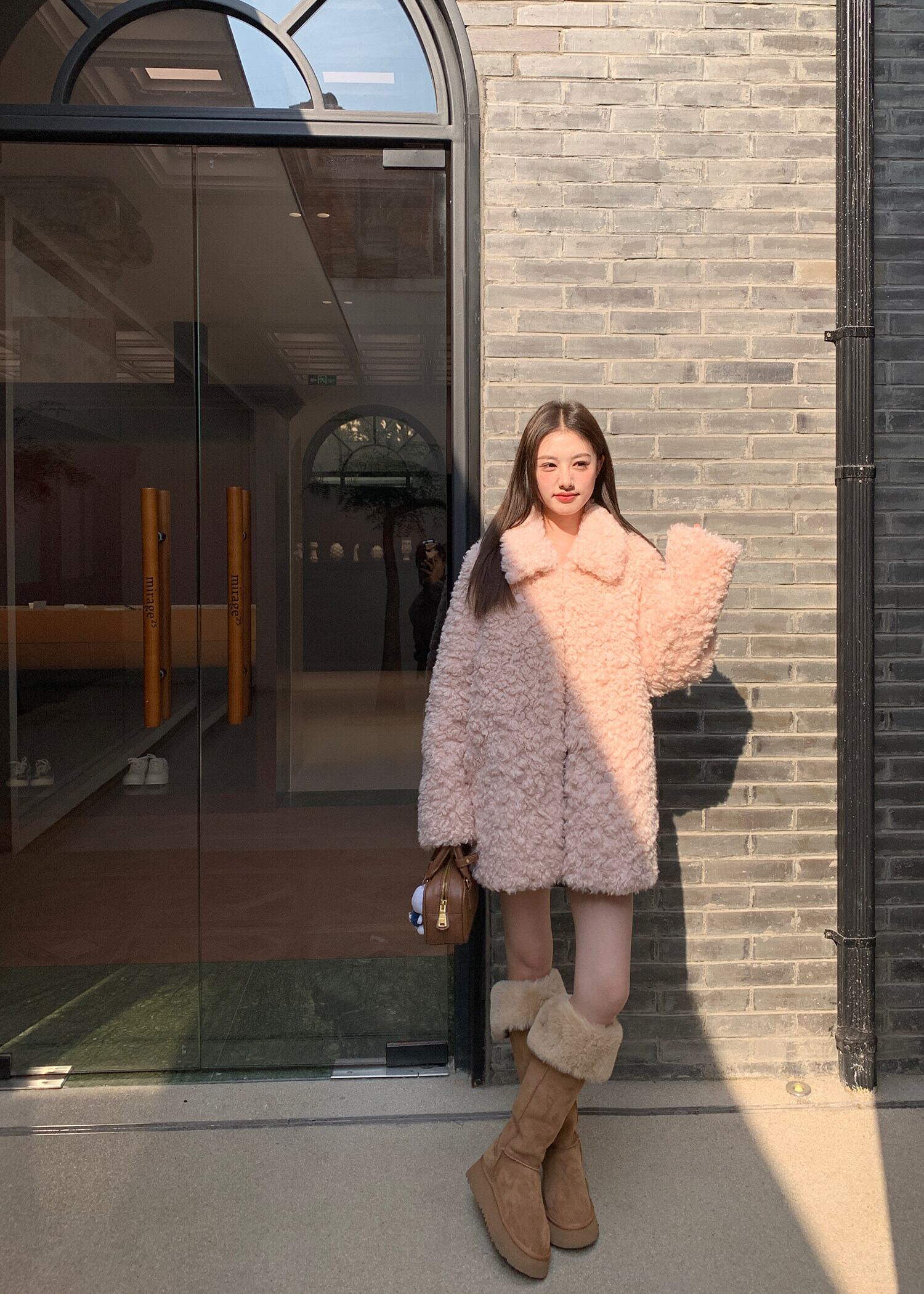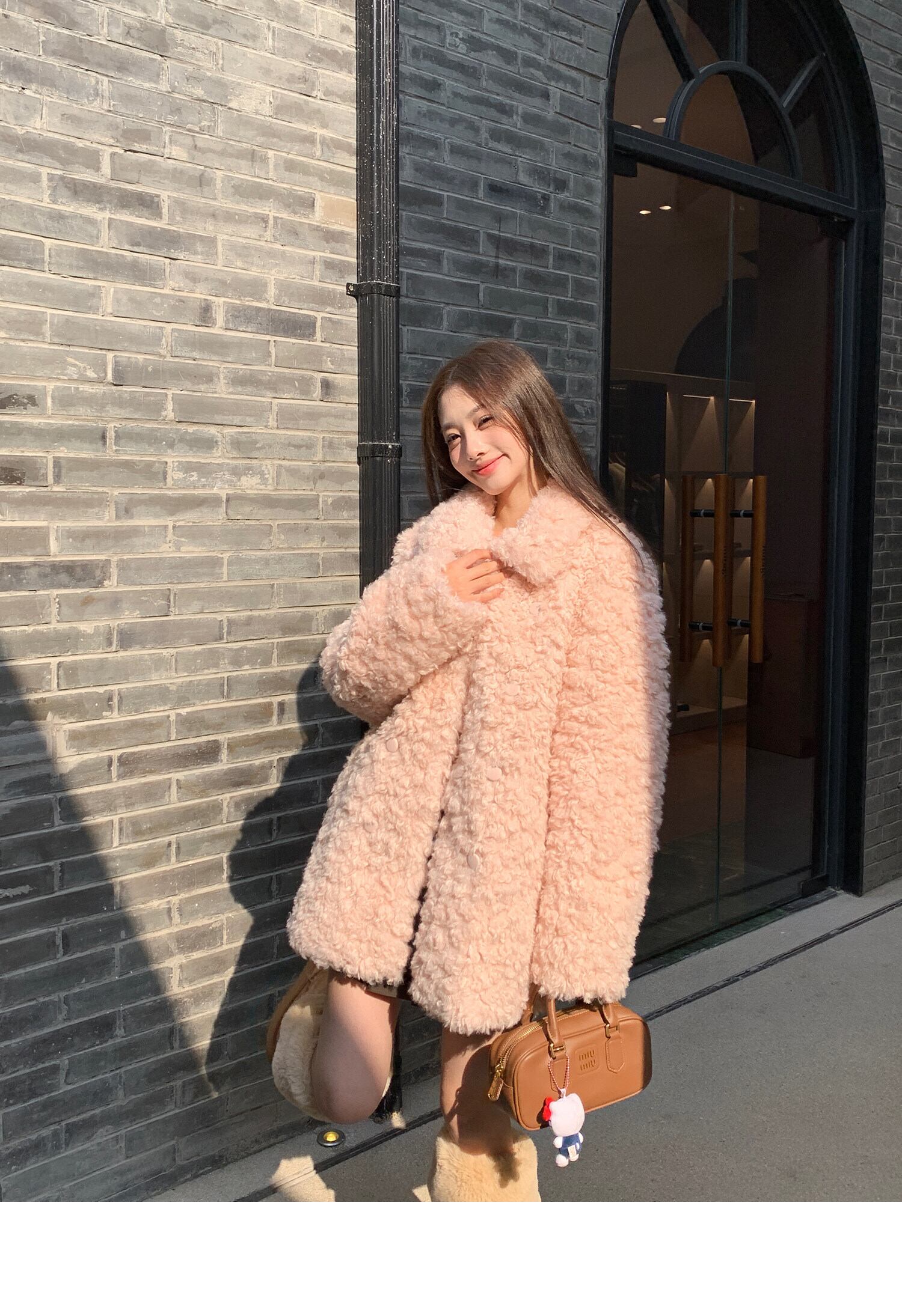 レディース トップス ファーコート ミドル丈 長袖 ラウンドネック ゆったり ボリューム フェイクファー もこもこ ふわふわ 防寒 大人可愛い おしゃれ こなれ感 上品 無地 秋 冬 20代 30代 40代 デート お出かけ 女子会 体型カバー 韓国 S M L ピンク ベージュ 黒 ブラック 茶色 ブラウン