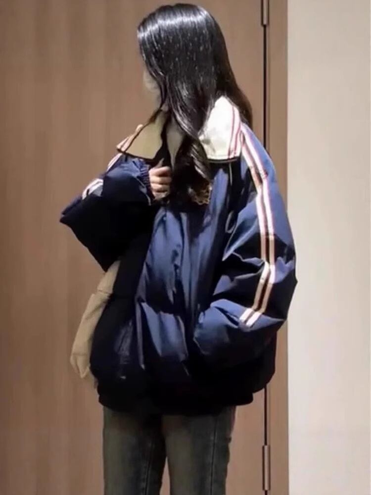 レディース アウター ダウンジャケット ショート丈 長袖 スタンドカラー ゆったり ストライプ ロゴ刺繍 ジッパー 大人可愛い おしゃれ こなれ感 上品 無地 冬 秋 20代 30代 40代 デート お出かけ 通勤 韓国 体型カバー S M L XL 2XL アプリコット ネイビーブルー