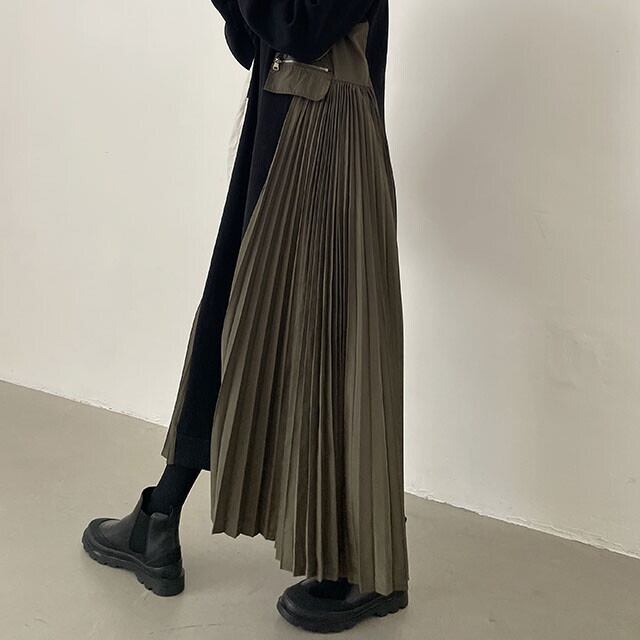 たっぷりプリーツのスカートが上品なAラインシルエットを作ります