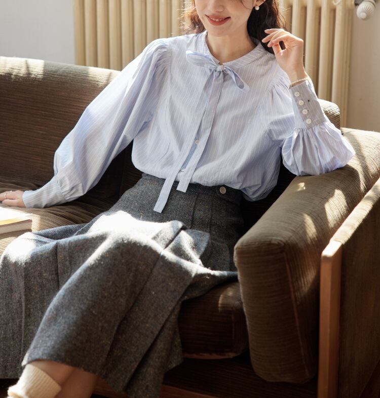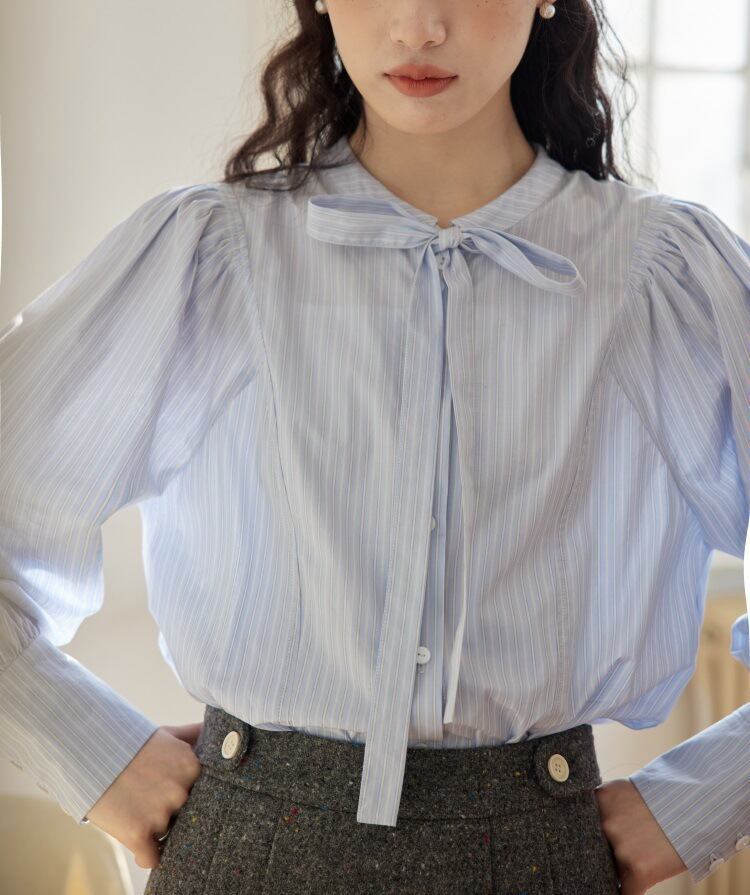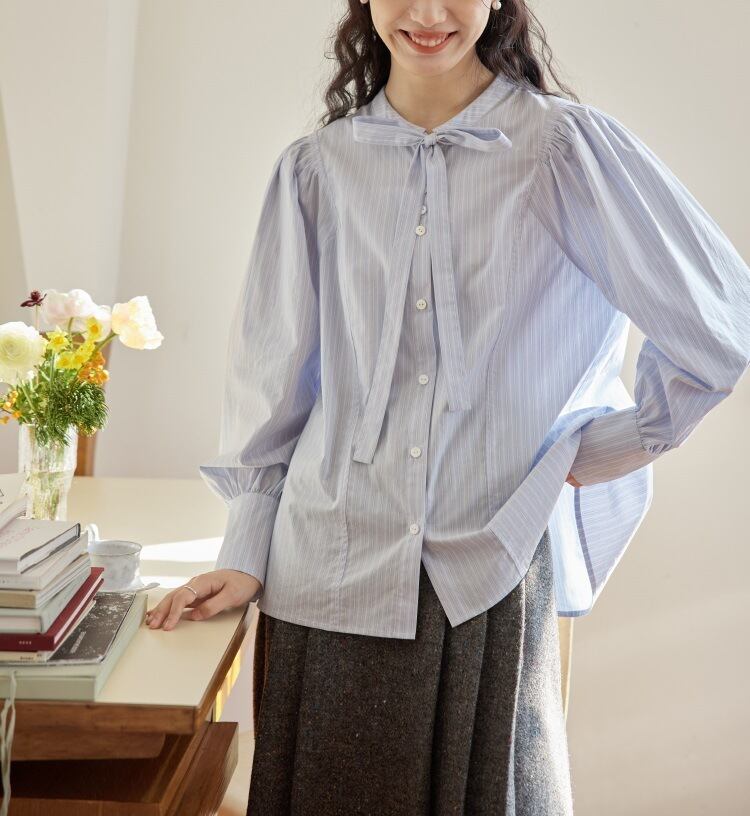 大きなリボンタイが印象的なボウタイブラウス。ふんわりとしたシルエットが女性らしいスタイルを演出します。通勤からデート、お出かけまで幅広いシーンで活躍する上品な一枚です。