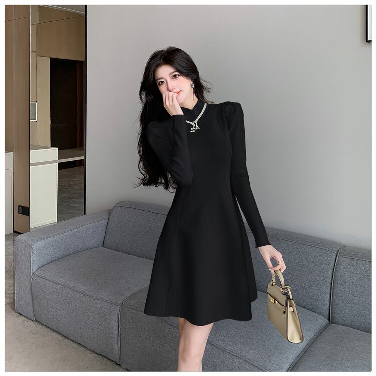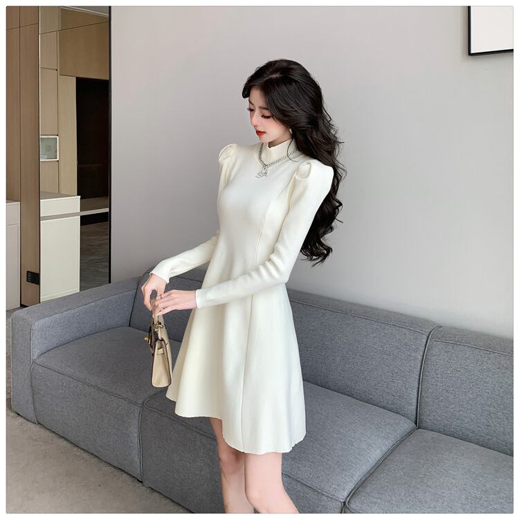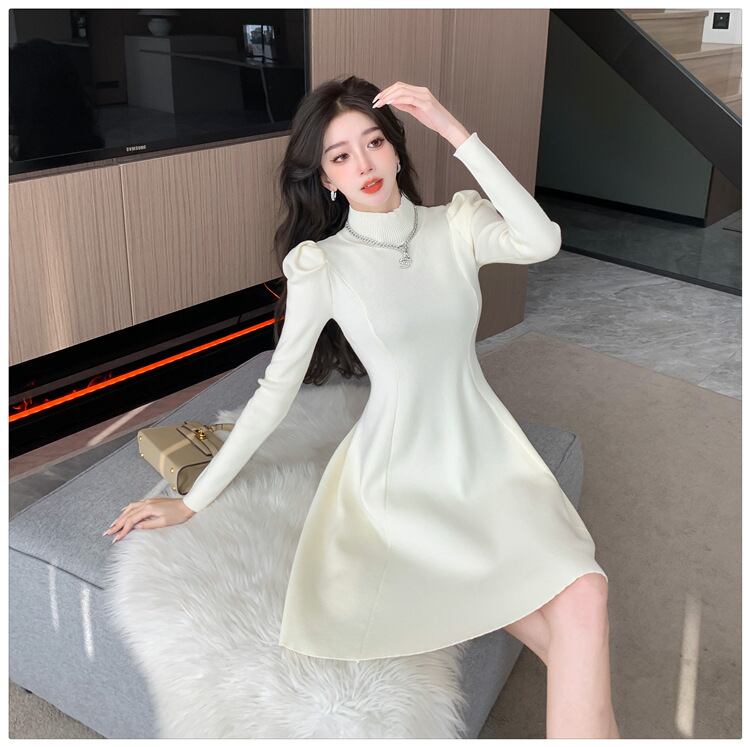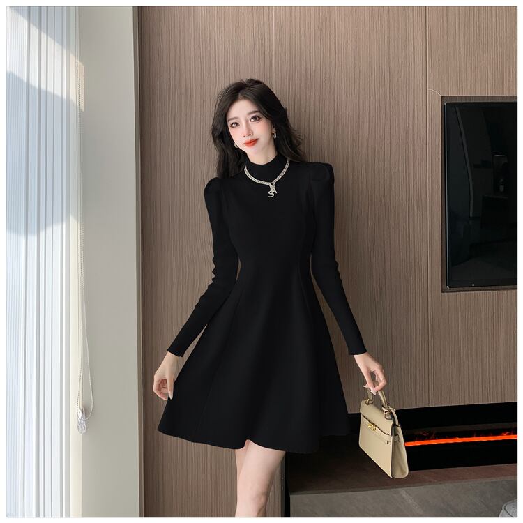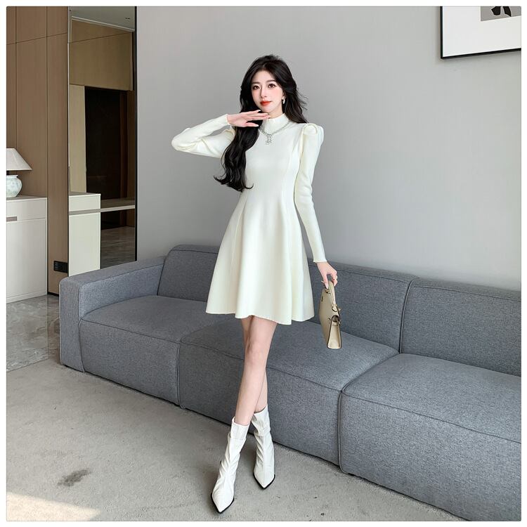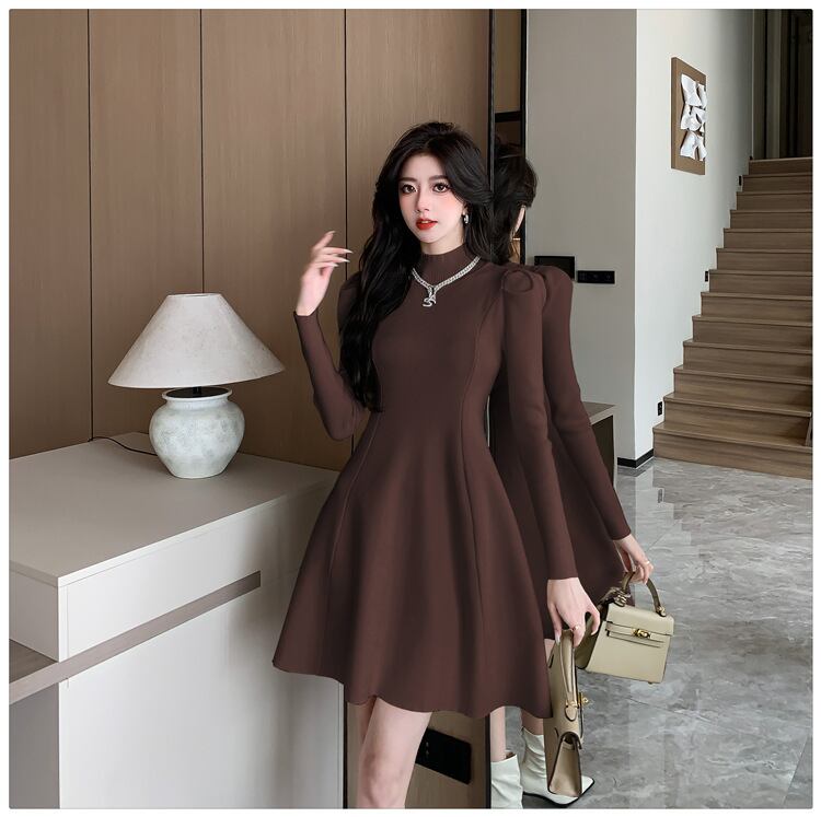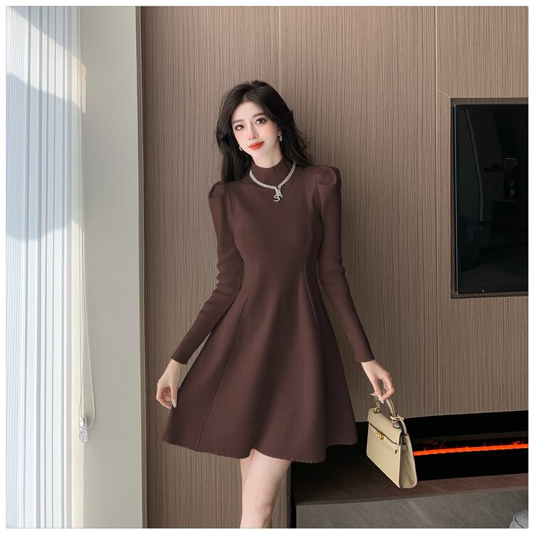 すっきりしたハイネックとAラインのフレアシルエットが女性らしさを引き立てるニットワンピース。落ち着いたカラーバリエーションで、オフィスからデートまで幅広いシーンに対応。ウエストが自然に細見えし、秋冬の着こなしに品のある存在感を添えます。