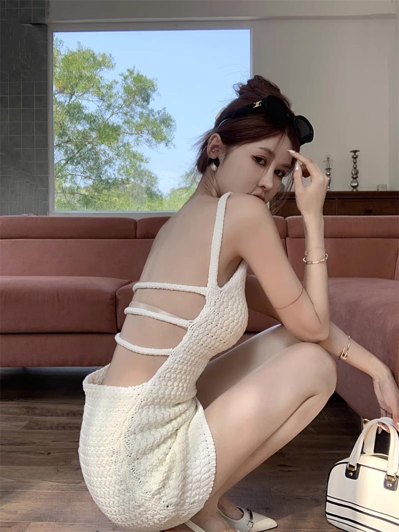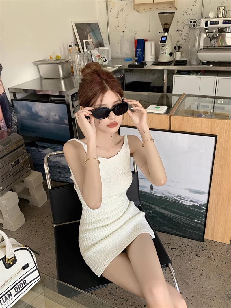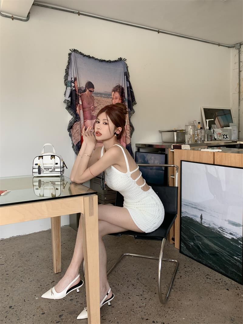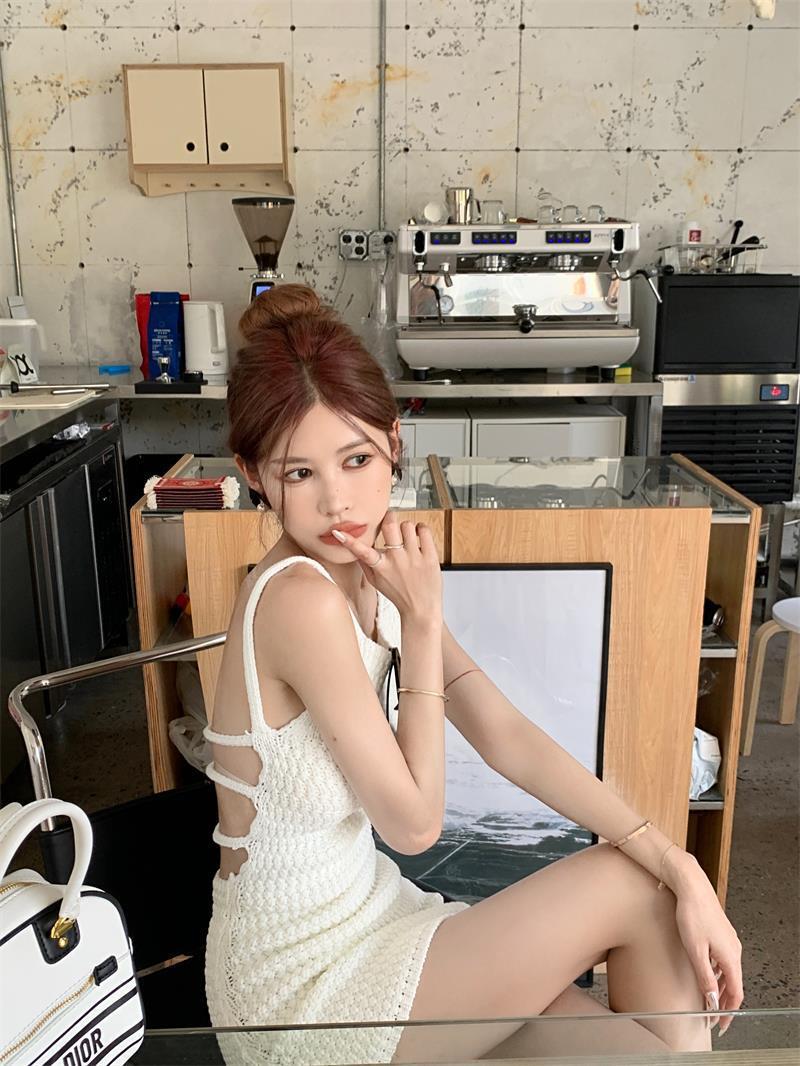 レディース ワンピース ミニワンピ 袖なし ノースリーブ スパゲッティストラップ タイト ストラップデザイン ウエストマーク スリット きれいめ 大人可愛い エレガント おしゃれ 無地 春 夏 デート パーティー お出かけ 女子会 韓国 トレンド モテ 清楚 フリーサイズ 白 ホワイト