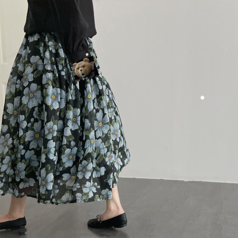 大人フェミニンな花柄ロングスカート 上品なAラインシルエットが体型をやさしくカバー ウエストゴム仕様で一日中快適な履き心地 春夏のデートやお出かけにぴったりなエレガントスタイル