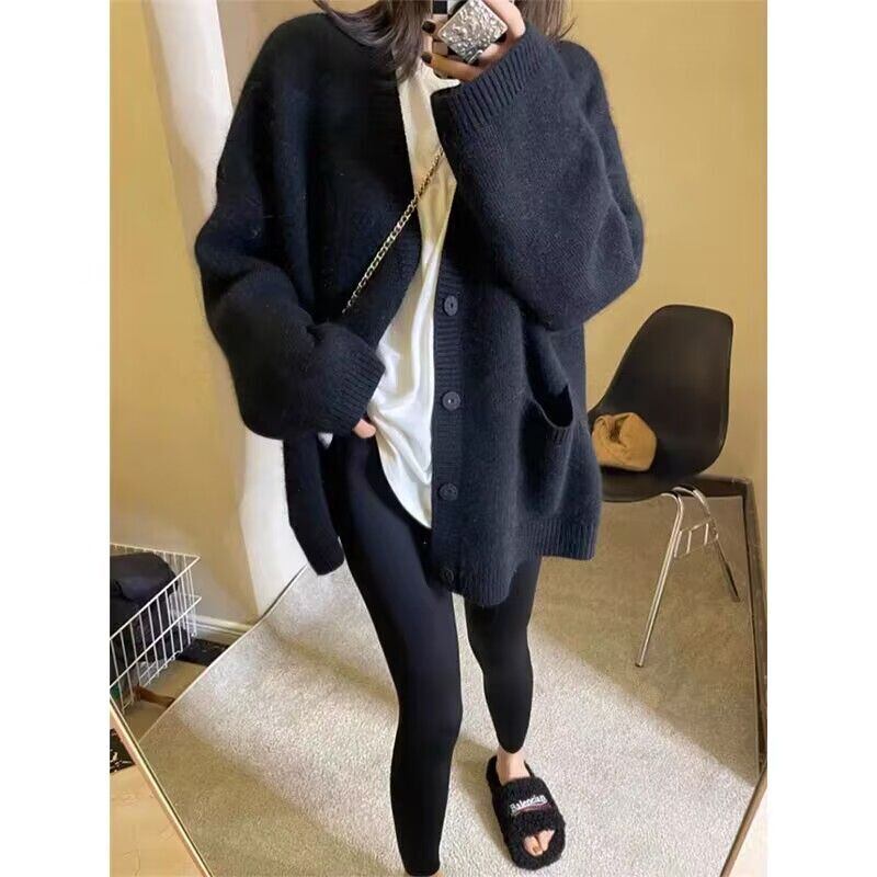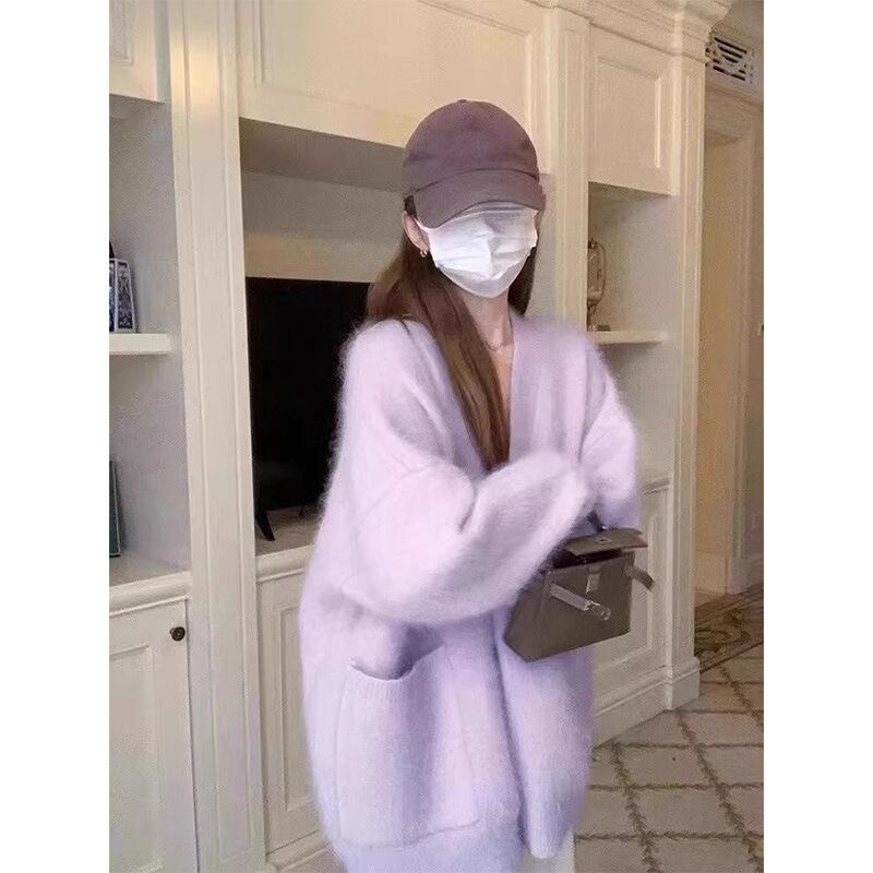 レディース ニット カーディガン ロング 長袖 Vネック ゆったり オーバーサイズ ボタン フロント開き モヘア調 ふわふわ 厚手 エレガント 大人可愛い おしゃれ 上品 無地 秋冬 20代 30代 40代 デート お出かけ カフェ ショッピング 女子会 暖かい 防寒 体型カバー 着回し トレンド フリーサイズ 黒 ブラック 白 ホワイト ピンク グレー コーヒー カーキ パープル