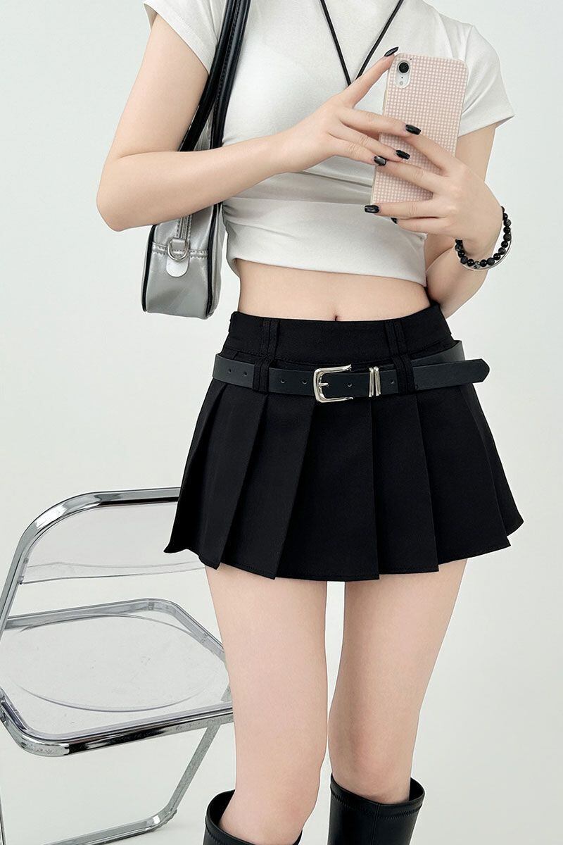 レディース スカート プリーツスカート ミニスカート フレアスカート ショート丈 Aライン プリーツ ウエストマーク ベルト付き かわいい おしゃれ トレンド 無地 春 夏 秋 20代 30代 学生 通学 デート お出かけ カフェ 女子会 美脚 脚長 着回し S M L XL 黒 ブラック グレー