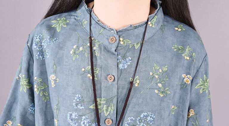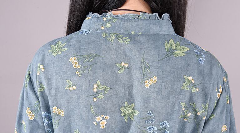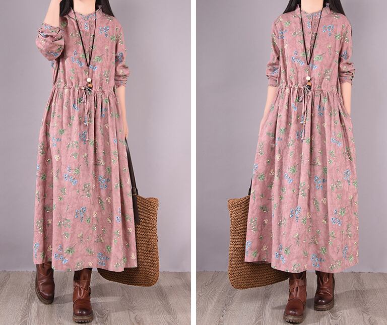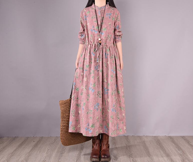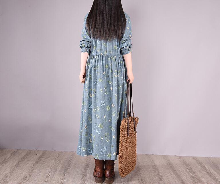 ワンピース フレアワンピース ロング丈 長袖 スタンドカラー フレア Aライン 大人可愛い きれいめ おしゃれ 花柄 フラワー レディース デート お出かけ リゾート 旅行 楽ちん M L XL 2XL 大きめ ゆったり ブルー グレー ピンク