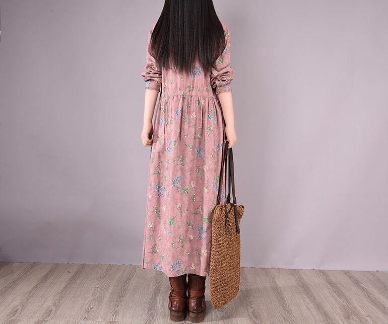 花柄のAラインロングワンピース