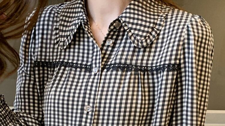 ドールカラー シフォンシャツ レディース 新作 春 ファッショナブル ランタンスリーブ 長袖 ゆったり ギンガムチェック バックロング フリル レース ギャザー エレガント シック ボタン シングルブレスト カジュアル ビッグサイズ 通勤 通学 学生 OL 20代 30代 オフィス 韓国 モテコーデ 大人女子 お出かけ スマート スッキリ見え 体型カバー 細見え スタイルUP 華奢見え ヤセ見え サマ見え こなれ感 S M L XL 2XL 白黒チェック | Bonny Me