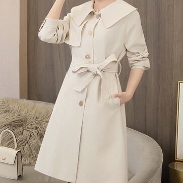 デザイン性の高いスプリングカラーのステンカラーコート。