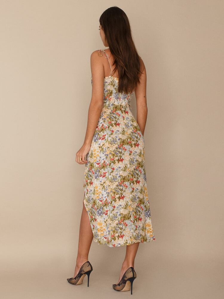レトロ風 ワンピース ワンピドレス ロング ロング丈 7分丈 ミディアム丈 袖なし ノースリーブ キャミソール フレア スリム ひらひら ヒラヒラ スリット サイドスリット かわいい 大人可愛い おしゃれ お洒落 エスニック 大人可愛い 大人女子 ラフ ラブリー キュート ガーリー セクシー 花柄 夏 レディース 女性用 デート お出かけ 休日 パーティー イベント リゾート 旅行 海 プール 着回し 普段使い 重ね着 韓国 オルチャン ファッション コーデ S M L 海辺 ビーチ 肩ひも リボン | Bonny Me
