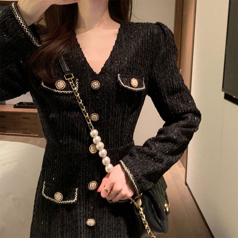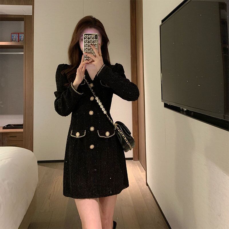 ドレス ワンピース パーティードレス パーティドレス 二次会ドレス ミニドレス ミニ ミニ丈 袖あり 長袖 Aライン かわいい 大人可愛い きれいめ 大人 上品 おしゃれ お洒落 ラブリー キュート ガーリー エレガント 存在感 ゴージャス 華やか レディース 女性用 パーティー イベント ホテル レストラン 韓国 韓国系 オルチャン ファッション コーデ 春 秋 二次会 2次会 お呼ばれ パーティー パーティ 入学式 入園式 卒業式 卒園式 S M L XL 黒 ブラック きらきら キラキラ ボタン | Bonny Me