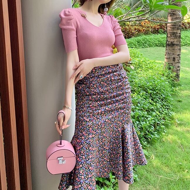 スカート ボトムス タイトスカート 膝丈 ひざ丈 膝下 ミモレ ミモレ丈 タイト マーメイド フリル ハイウエスト 大人可愛い 大人 お洒落 レトロ 大人女子 ラブリー キュート ガーリー エレガント 花柄 小花柄 フラワー ボタニカル 春 夏 10代 20代 30代 40代 50代 60代 レディース 女性用 ママ デート お出かけ 休日 モテ インスタ映え サイズ XS S M L XL 2XL 3XL 小さいサイズ 大きいサイズ 大きい 大きめ ビッグサイズ ゆったり ゆる 色展開 ピンク | Bonny Me