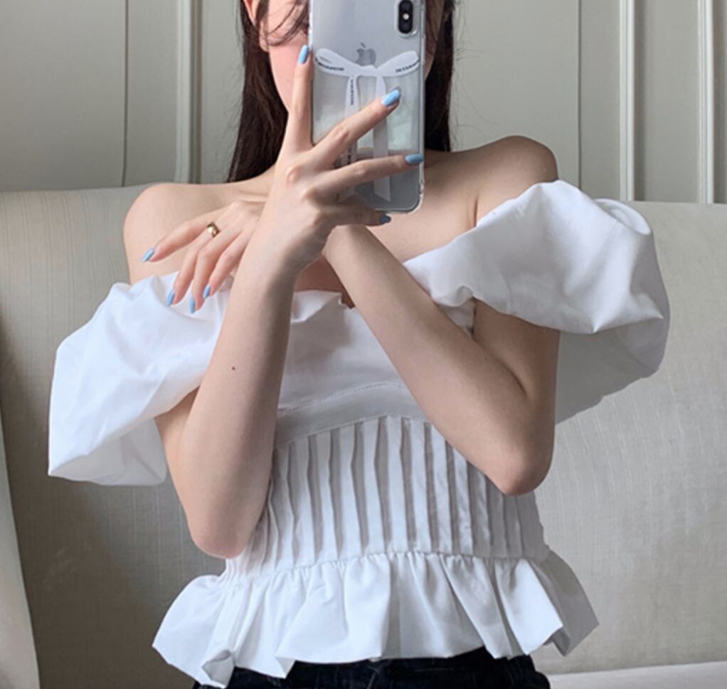 トップス デート シャツ ブラウス カットソー ショート ショート丈 袖あり パフスリーブ ワンショルダー ワンショル かわいい 大人可愛い きれいめ シンプル カジュアル 大人 上品 おしゃれ お洒落 主役級 存在感 夏 10代 20代 30代 レディース 女性用 OL 学生 デート お出かけ 公園デビュー 女子会 休日 イベント 旅行 着回し 普段使い ファッション コーデ 楽ちん モテ トレンド 流行 インスタ映え S M 白 ホワイト | Bonny Me