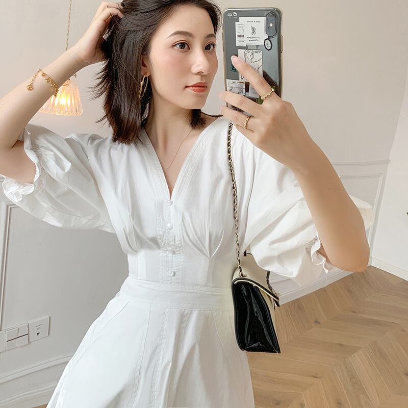 ワンピース デート フレアワンピース ミモレ ミモレ丈 袖あり 半袖 Vネック かわいい 大人可愛い きれいめ シンプル カジュアル 大人 上品 おしゃれ お洒落 主役級 存在感 夏 10代 20代 30代 レディース 女性用 OL 学生 デート お出かけ 公園デビュー 女子会 休日 イベント 旅行 着回し 普段使い ファッション コーデ 楽ちん モテ トレンド 流行 インスタ映え S M L XL ゆったり ゆる 白 ホワイト | Bonny Me