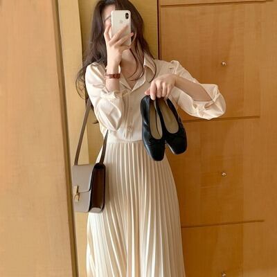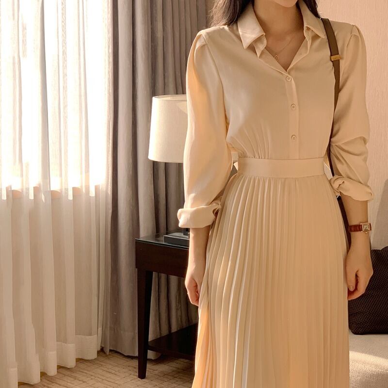 ワンピース デート ロング ロング丈 袖あり 長袖 プリーツ かわいい 大人可愛い きれいめ シンプル カジュアル 大人 上品 おしゃれ お洒落 主役級 存在感 春 秋 10代 20代 30代 レディース 女性用 OL 学生 デート お出かけ 公園デビュー 女子会 休日 イベント 旅行 着回し 普段使い ファッション コーデ 楽ちん モテ トレンド 流行 インスタ映え フリーサイズ アプリコット | Bonny Me