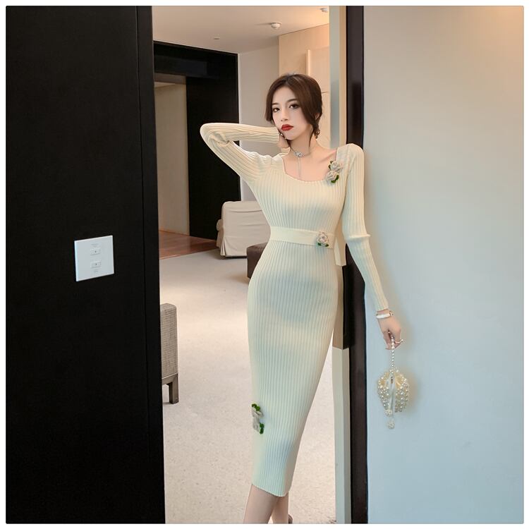 ワンピース デート ロング ロング丈 袖あり 長袖 スクエアネック スリム タイト 細身 かわいい 大人可愛い きれいめ シンプル カジュアル 大人 上品 おしゃれ お洒落 主役級 存在感 秋 冬 10代 20代 30代 レディース 女性用 OL 学生 デート お出かけ 公園デビュー 女子会 休日 イベント 旅行 着回し 普段使い ファッション コーデ 楽ちん モテ トレンド 流行 インスタ映え S M L 白 ホワイト | Bonny Me