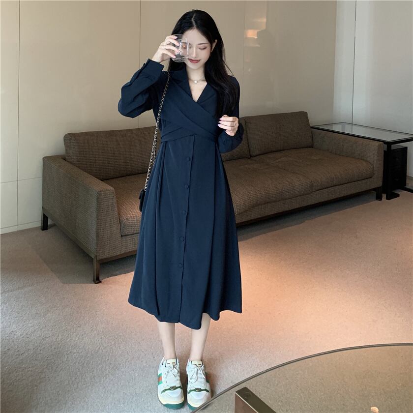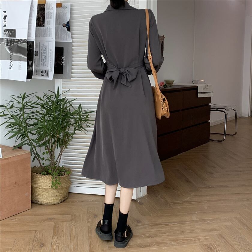 ワンピース デート フレアワンピース ミモレ ミモレ丈 袖あり 長袖 Vネック リボン かわいい 大人可愛い きれいめ シンプル カジュアル 大人 上品 おしゃれ お洒落 主役級 存在感 春 秋 冬 10代 20代 30代 レディース 女性用 OL 学生 デート お出かけ 公園デビュー 女子会 休日 イベント 旅行 着回し 普段使い ファッション コーデ 楽ちん モテ トレンド 流行 インスタ映え フリーサイズ 灰色 グレー ネイビー | Bonny Me