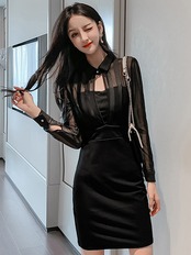 ワンピース デート ワンピドレス ショート 袖あり 長袖 透け感 シースルー かわいい 大人可愛い きれいめ シンプル カジュアル 大人 上品 おしゃれ お洒落 主役級 存在感 春 夏 秋 10代 20代 30代 レディース 女性用 OL 学生 デート お出かけ 公園デビュー 女子会 休日 イベント 旅行 着回し 普段使い ファッション コーデ 楽ちん モテ トレンド 流行 インスタ映え S M L XL 黒 ブラック | Bonny Me