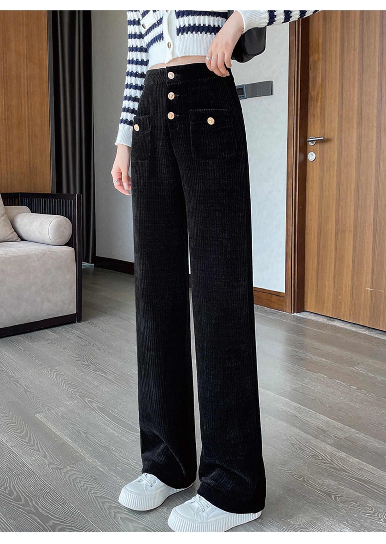 すっきりとしたワイドストレートのラインで美脚効果抜群。