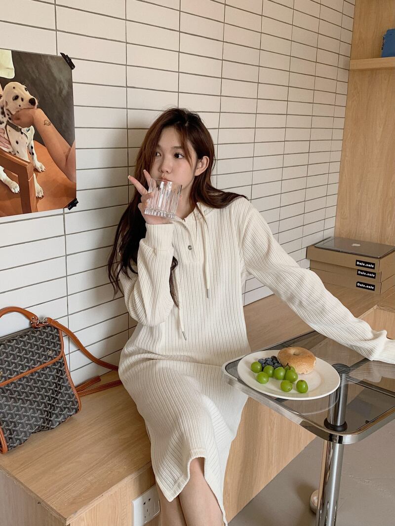 ワンピース デート ニットソー フーディー ミモレ ミモレ丈 袖あり 長袖 スリット かわいい 大人可愛い きれいめ シンプル カジュアル 大人 上品 おしゃれ お洒落 主役級 存在感 春 秋 冬 10代 20代 30代 レディース 女性用 OL 学生 デート お出かけ 公園デビュー 女子会 休日 イベント 旅行 着回し 普段使い ファッション コーデ 楽ちん モテ トレンド 流行 インスタ映え フリーサイズ 白 ホワイト | Bonny Me