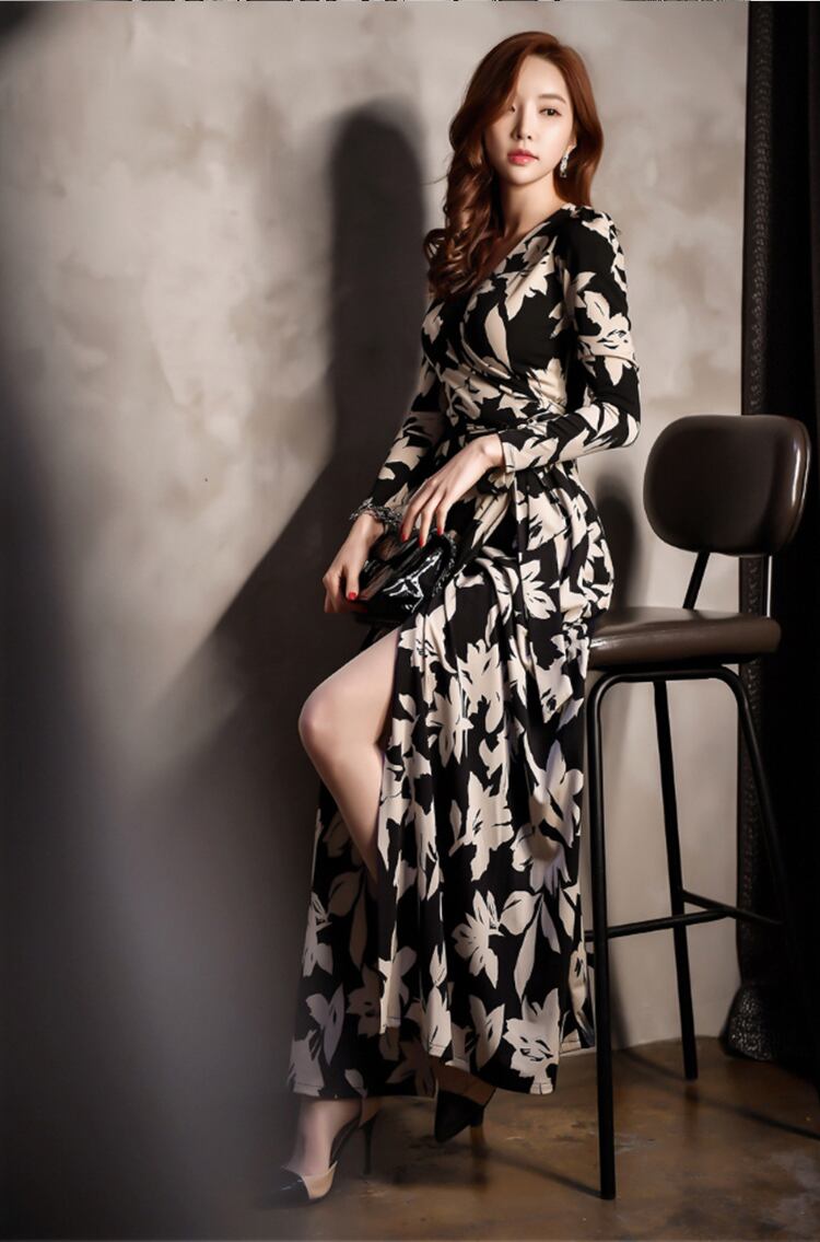 ワンピース デート ワンピドレス ロング ロング丈 袖あり スリム タイト スリット かわいい 大人可愛い きれいめ シンプル カジュアル 大人 上品 おしゃれ お洒落 主役級 存在感 柄 春 夏 秋 10代 20代 30代 レディース 女性用 OL 学生 デート お出かけ 公園デビュー 女子会 休日 イベント 旅行 着回し 普段使い ファッション コーデ 楽ちん モテ トレンド 流行 インスタ映え S M L XL 2XL 黒 ブラック 青 ブルー | Bonny Me