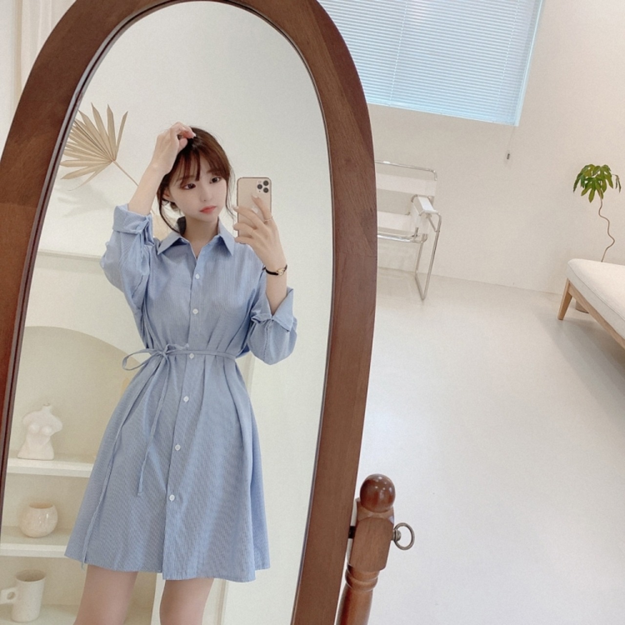 ワンピース デート シャツ シャツワンピース ミモレ ミモレ丈 袖あり 長袖 かわいい 大人可愛い きれいめ シンプル カジュアル 大人 上品 おしゃれ お洒落 主役級 存在感 柄 春 秋 10代 20代 30代 レディース 女性用 OL 学生 デート お出かけ 公園デビュー 女子会 休日 イベント 旅行 着回し 普段使い ファッション コーデ 楽ちん モテ トレンド 流行 インスタ映え M L XL 2XL 3XL 青 ブルー | Bonny Me