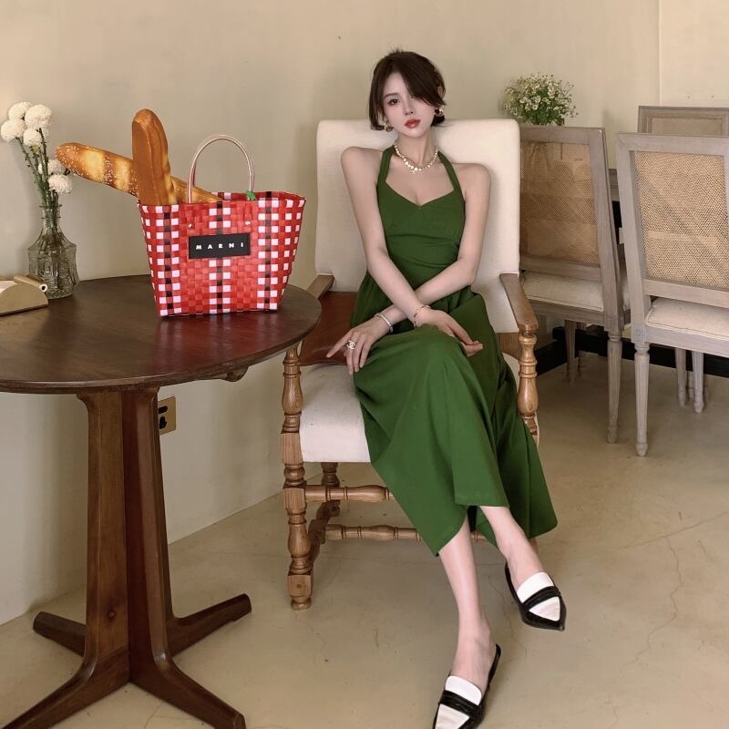 ワンピース キャミソール フレアワンピース ワンピドレス ロング ロング丈 マキシ マキシ丈 袖なし ノースリーブ ホルターネック スリム タイト 細身 ウエストマーク バックシャン バックコンシャス 前開き ベロア きれいめ 大人 おしゃれ お洒落 大人女子 こなれ感 ラブリー キュート ガーリー 無地 夏 10代 20代 30代 40代 50代 レディース 女性用 デート お出かけ 休日 イベント リゾート 旅行 インスタ映え サイズ S M L XL 色展開 赤 レッド 緑 グリーン カラバリ | Bonny Me
