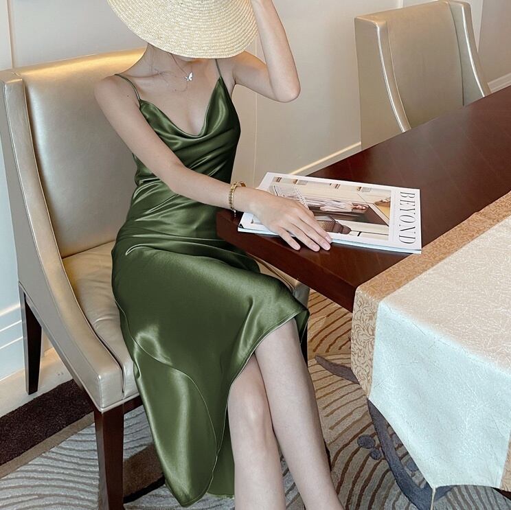 光沢感のあるサテンのキャミワンピ。