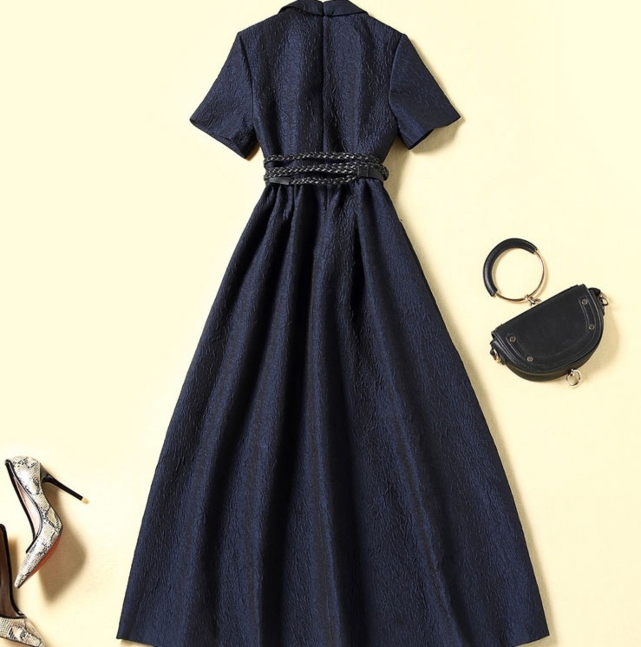 ワンピース ワンピドレス ロング ロング丈 マキシ マキシ丈 袖あり 半袖 Vネック 襟付き フレア セミフレア Aライン ベルト ウエストマーク 大人可愛い 大人 上品 おしゃれ お洒落 かっこいい 大人女子 こなれ感 キュート ガーリー クール エレガント モダン 主役級 存在感 無地 夏 10代 20代 30代 40代 50代 60代 レディース 女性用 ママ デート お出かけ 休日 パーティー イベント モテ 体形カバー インスタ映え サイズ S M L XL 色展開 青 ブルー ネイビーブルー | Bonny Me