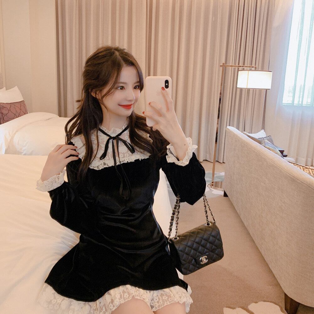 ワンピース デート ショート ショート丈 袖あり 長袖 レース かわいい 大人可愛い きれいめ シンプル カジュアル 大人 上品 おしゃれ お洒落 主役級 存在感 春 秋 冬 10代 20代 30代 レディース 女性用 OL 学生 デート お出かけ 公園デビュー 女子会 休日 イベント 旅行 着回し 普段使い ファッション コーデ 楽ちん モテ トレンド 流行 インスタ映え S M L XL 黒 ブラック | Bonny Me