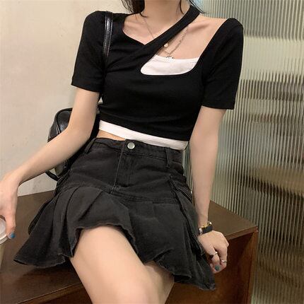 トップス デート シャツ ブラウス カットソー 袖あり 半袖 スリム タイト 細身 かわいい 大人可愛い きれいめ シンプル カジュアル 大人 上品 おしゃれ お洒落 主役級 存在感 夏 10代 20代 30代 レディース 女性用 OL 学生 デート お出かけ 公園デビュー 女子会 休日 イベント 旅行 着回し 普段使い ファッション コーデ 楽ちん モテ トレンド 流行 インスタ映え M L XL 黒 ブラック アプリコット | Bonny Me
