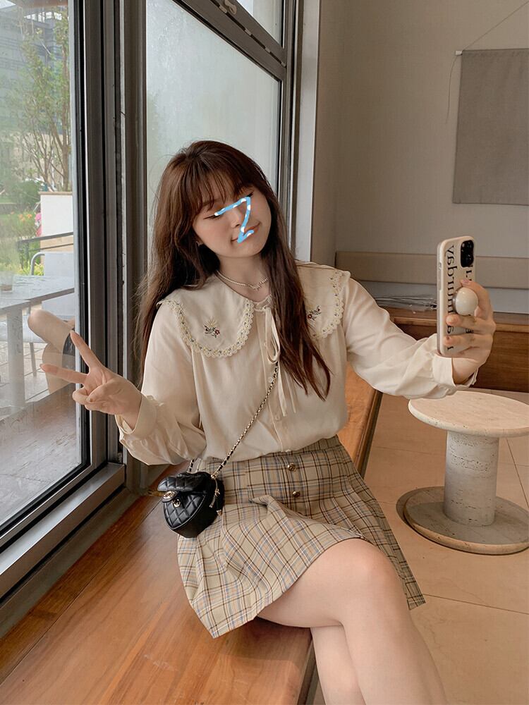 トップス シャツ ブラウス 長袖 襟付き ビッグカラー ワイド レース 刺繍 リボン 前開き かわいい 大人可愛い シンプル カジュアル おしゃれ お洒落 大人女子 こなれ感 ラブリー キュート ガーリー 主役級 存在感 無地 柄 花柄 小花柄 フラワー 春 秋 10代 20代 レディース 女性用 デート お出かけ 公園デビュー 女子会 休日 旅行 ホテル レストラン 着回し 普段使い 重ね着 韓国系 オルチャン ファッション コーデ スタイル 体系カバー M L XL 2XL 3XL アプリコット | Bonny Me
