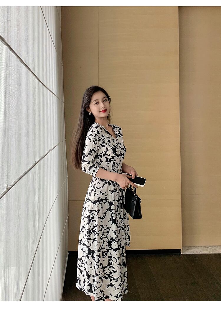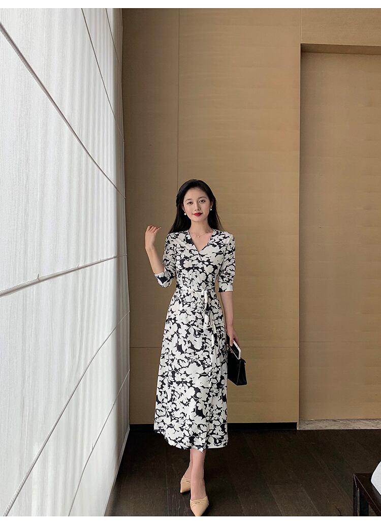 ワンピース スリット 膝丈 ひざ丈 膝下 7分袖 Vネック きれいめ 大人 上品 おしゃれ お洒落 かっこいい 大人可愛い 大人女子 セクシー エレガント 柄 夏 秋 20代 30代 レディース 女性用 OL デート お出かけ 女子会 休日 パーティー イベント ホテル レストラン デート 韓国 韓国系 オルチャン ファッション スタイル モテ サイズ S M L | Bonny Me