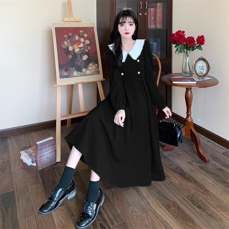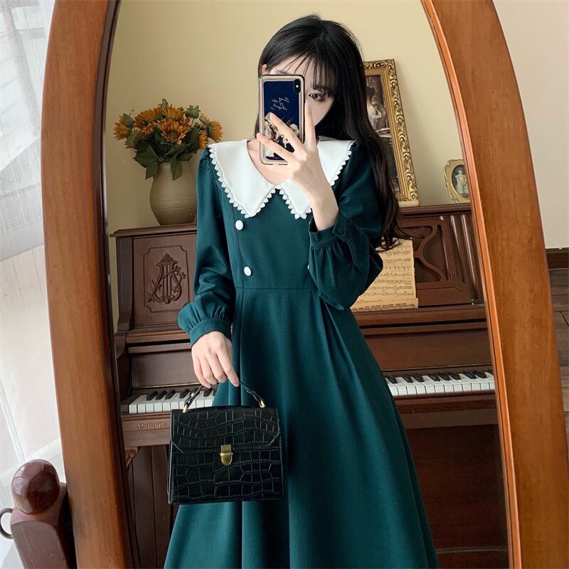 ワンピース フレアワンピース ミモレ ミモレ丈 ロング ロング丈 袖あり 長袖 Vネック 襟付き フレア セミフレア Aライン レース 刺繍 フリル 大人可愛い お洒落 レトロ ガーリー 抜け感 無地 春 秋 冬 10代 20代 30代 40代 50代 60代 レディース 女性用 ママ マタニティ お出かけ 休日 普段使い モテ インスタ映え サイズ M L XL 2XL 3XL 4XL 小さいサイズ 大きいサイズ 大きい 大きめ ビッグサイズ ゆったり ゆる 色展開 黒 ブラック 緑 グリーン | Bonny Me