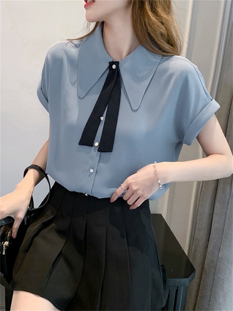 トップス デート シャツ ブラウス カットソー 袖あり 半袖 かわいい 大人可愛い きれいめ シンプル カジュアル 大人 上品 おしゃれ お洒落 主役級 存在感 夏 10代 20代 30代 レディース 女性用 OL 学生 デート お出かけ 公園デビュー 女子会 休日 イベント 旅行 着回し 普段使い ファッション コーデ 楽ちん モテ トレンド 流行 インスタ映え S M L XL 2XL 青 ブルー | Bonny Me
