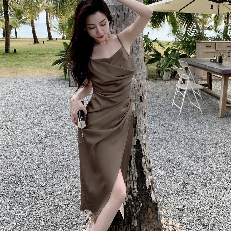 ワンピース ワンピドレス 膝下 ミモレ ミモレ丈 袖なし ノースリーブ スリム Iライン スリット サイドスリット 大人可愛い きれいめ シンプル 大人 上品 おしゃれ お洒落 かっこいい 大人女子 こなれ感 クール セクシー エレガント モダン 主役級 存在感 とろみ感 抜け感 無地 夏 10代 20代 30代 40代 50代 60代 レディース 女性用 ママ 休日 パーティー イベント 重ね着 モテ インスタ映え サイズ S M L XL 色展開 白 茶色 ブラウン カラバリ 光沢 | Bonny Me