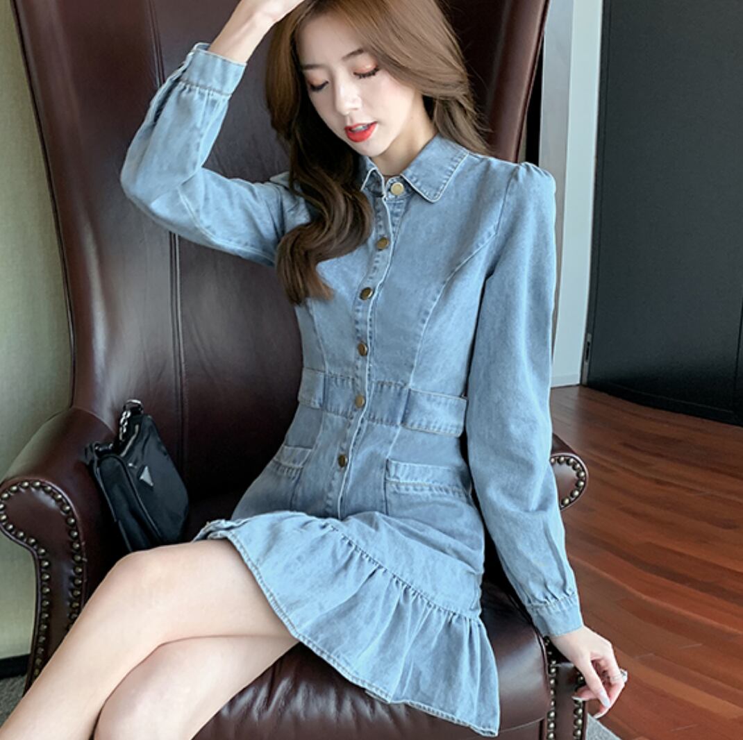ワンピース デート デニムワンピース ショート ショート丈 袖あり 長袖 スリム タイト 細身 デニム かわいい 大人可愛い きれいめ シンプル カジュアル 大人 上品 おしゃれ お洒落 主役級 存在感 春 秋 10代 20代 30代 レディース 女性用 OL 学生 デート お出かけ 公園デビュー 女子会 休日 イベント 旅行 着回し 普段使い ファッション コーデ 楽ちん モテ トレンド 流行 インスタ映え S M L XL 青 ブルー | Bonny Me