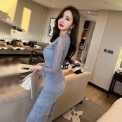 ワンピース デート 膝丈 ひざ丈 ミモレ ミモレ丈 袖あり スリム タイト 細身 レース スリット かわいい 大人可愛い きれいめ シンプル カジュアル 大人 上品 おしゃれ お洒落 主役級 存在感 春 秋 10代 20代 30代 レディース 女性用 OL 学生 デート お出かけ 公園デビュー 女子会 休日 イベント 旅行 着回し 普段使い ファッション コーデ 楽ちん モテ トレンド 流行 インスタ映え S M L XL 青 ブルー 灰色 グレー | Bonny Me
