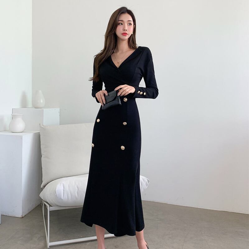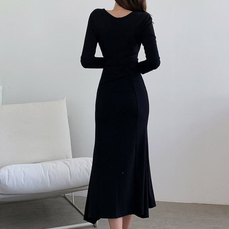 ワンピース デート ワンピドレス ロング ロング丈 袖あり 長袖 Vネック スリム タイト 細身 かわいい 大人可愛い きれいめ シンプル カジュアル 大人 上品 おしゃれ お洒落 主役級 存在感 春 秋 10代 20代 30代 レディース 女性用 OL 学生 デート お出かけ 公園デビュー 女子会 休日 イベント 旅行 着回し 普段使い ファッション コーデ 楽ちん モテ トレンド 流行 インスタ映え XL 2XL 3XL 4XL 黒 ブラック | Bonny Me